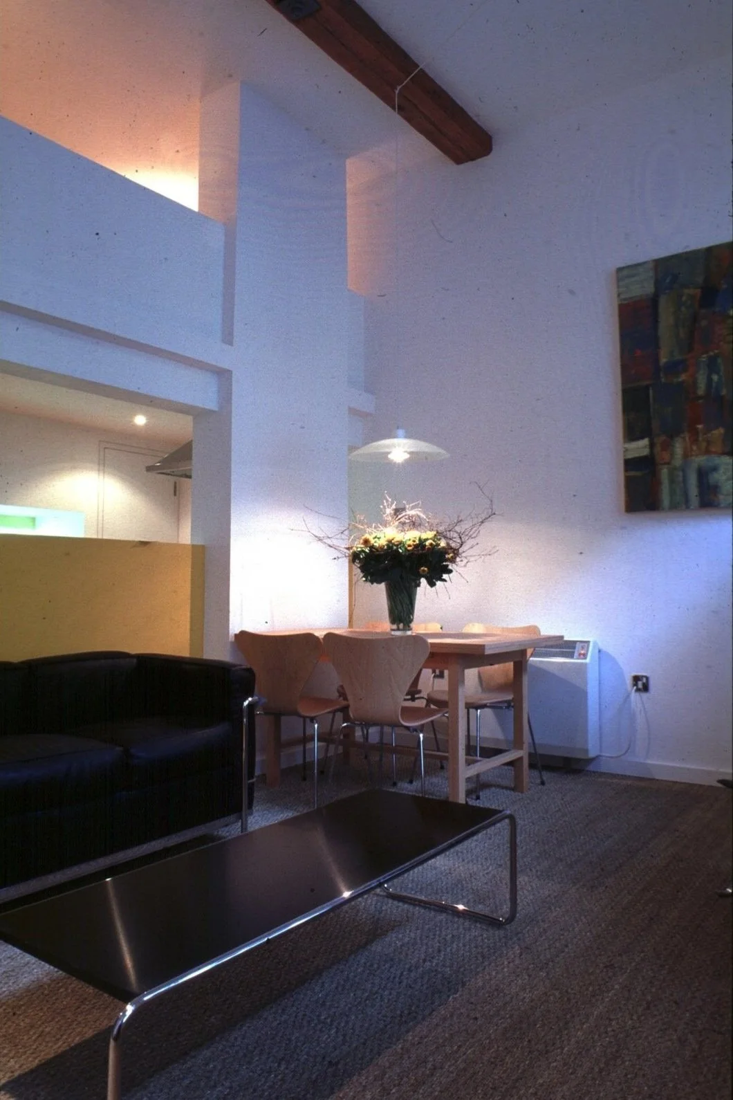 The second and third floors are more traditionally arranged but still use the notion of minimal intervention of new insertions juxtaposed against the industrial archeology of exposed pitch pine beams and cast iron columns.