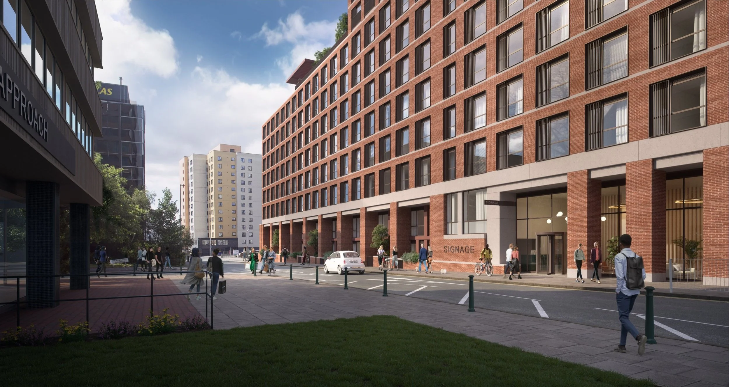 By drawing on the warehouse typology, interpreted into a modern architectural language; the new building through its scale, facade layering and detailing will contribute positively to the local streetscape and the wider context. An external language of brick, masonry and metalwork with deep set window reveals reflects a more robust, almost ‘converted industrial’ aesthetic.