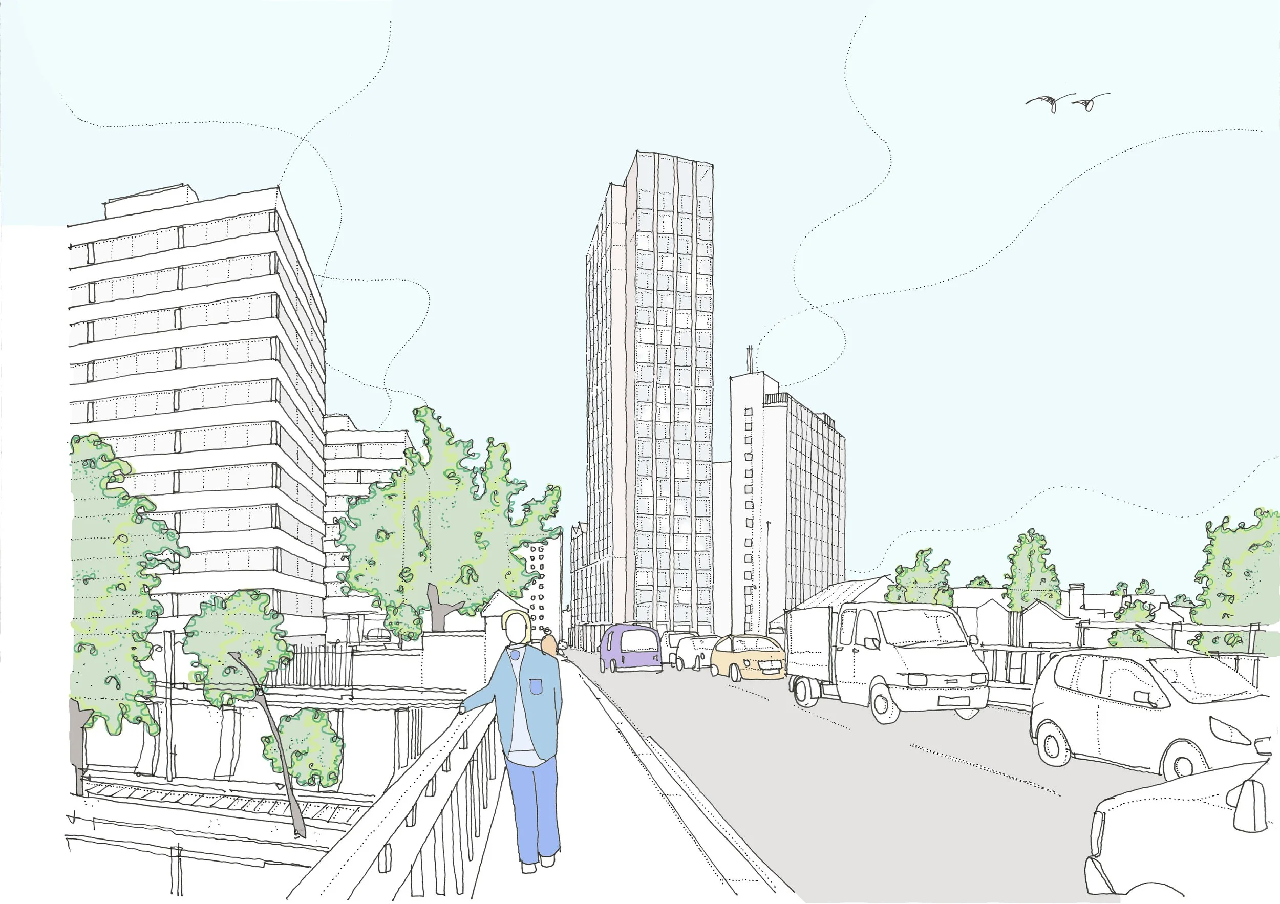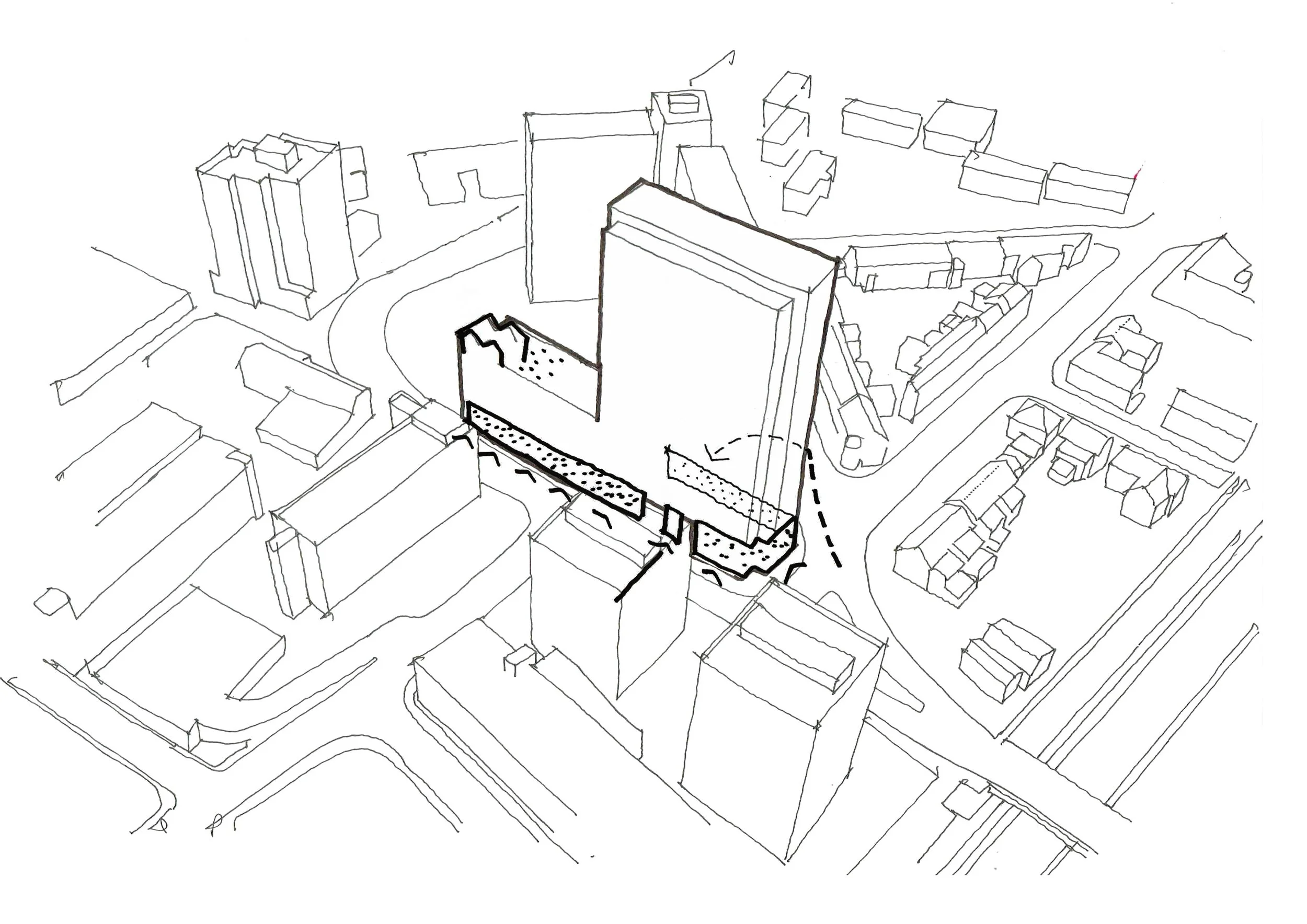 The development involves the demolition of an existing property and the erection of a multi storey building comprising of 256 no. one, two and three-bedroom apartments and three-bedroom townhouses along with resident’s amenity space and rooftop gardens. There is no commercial or public access space in this building.