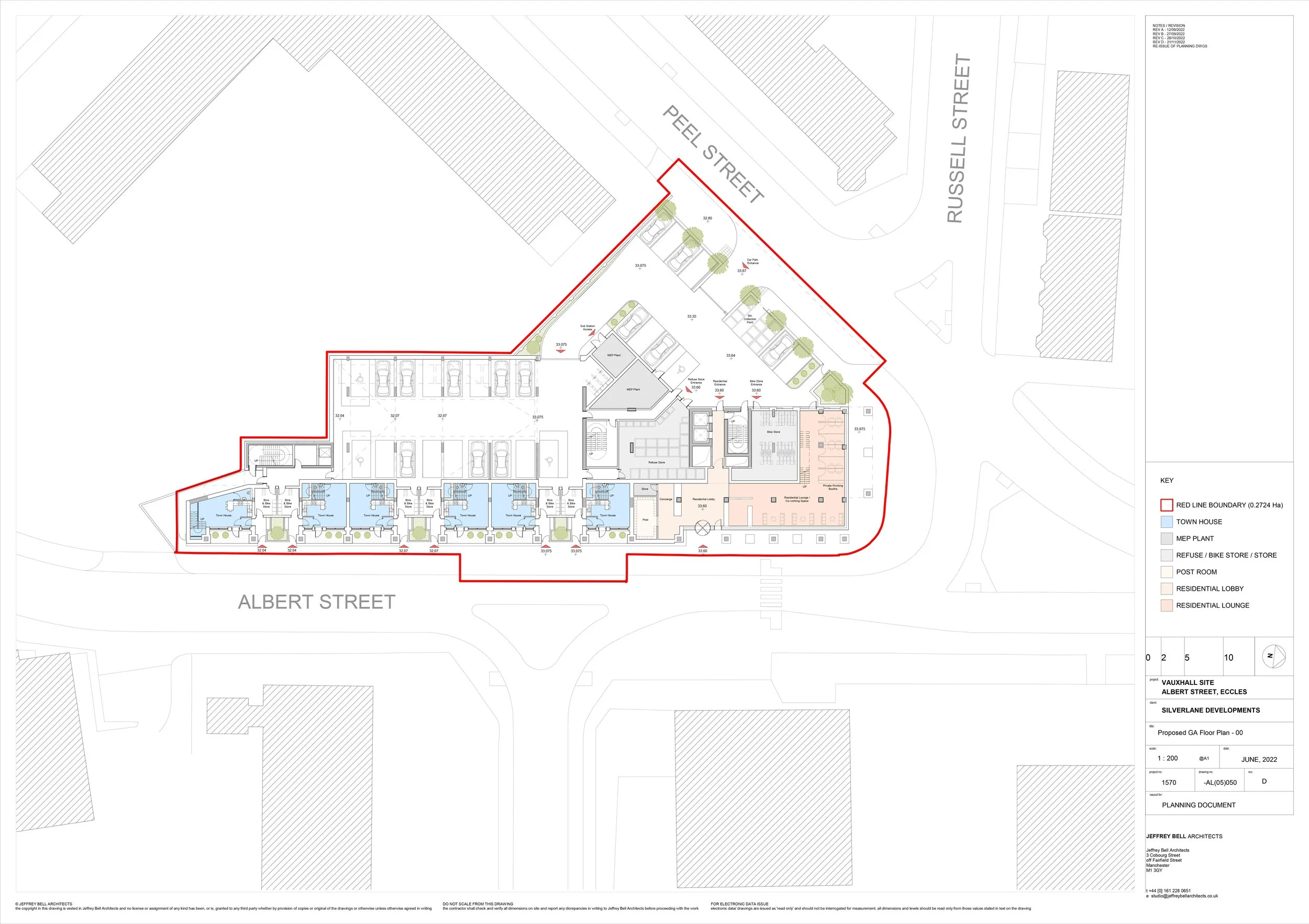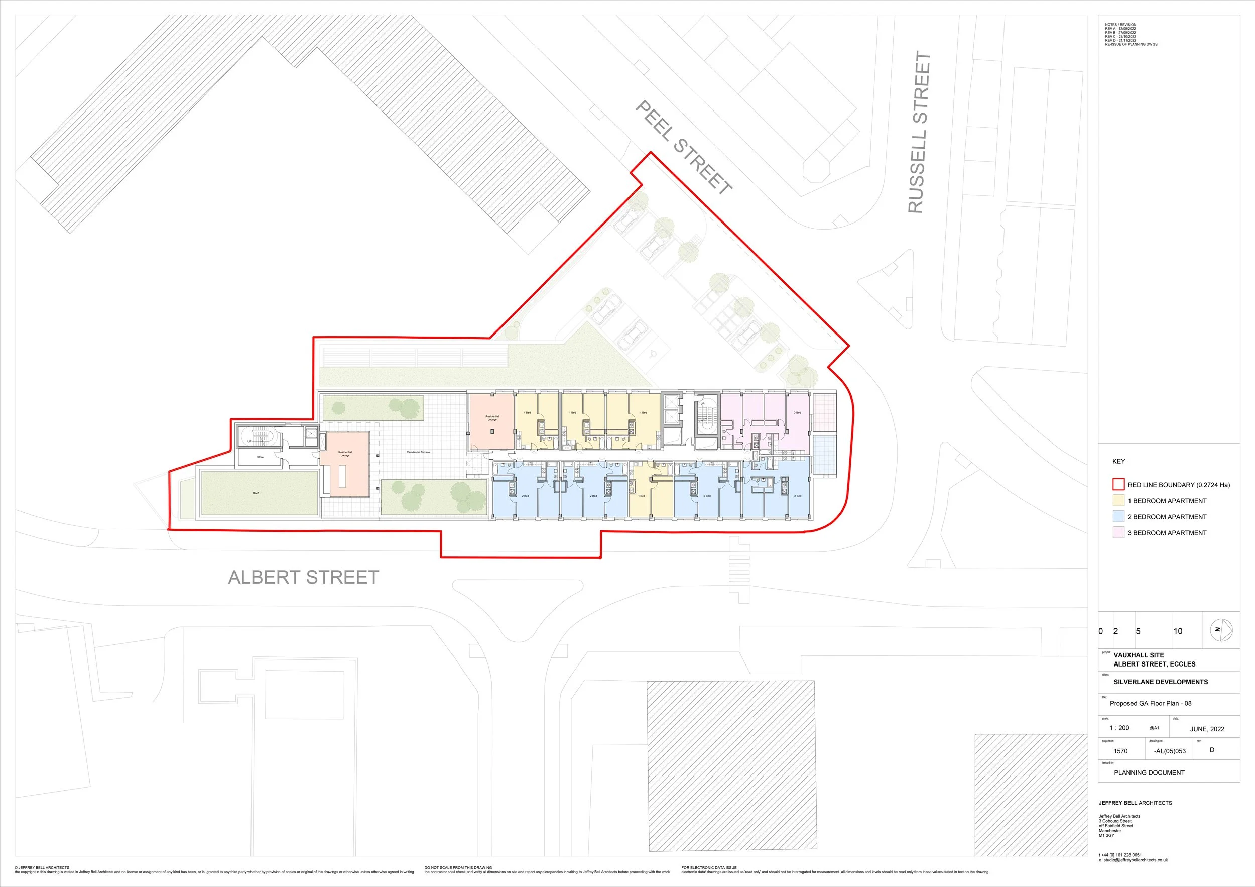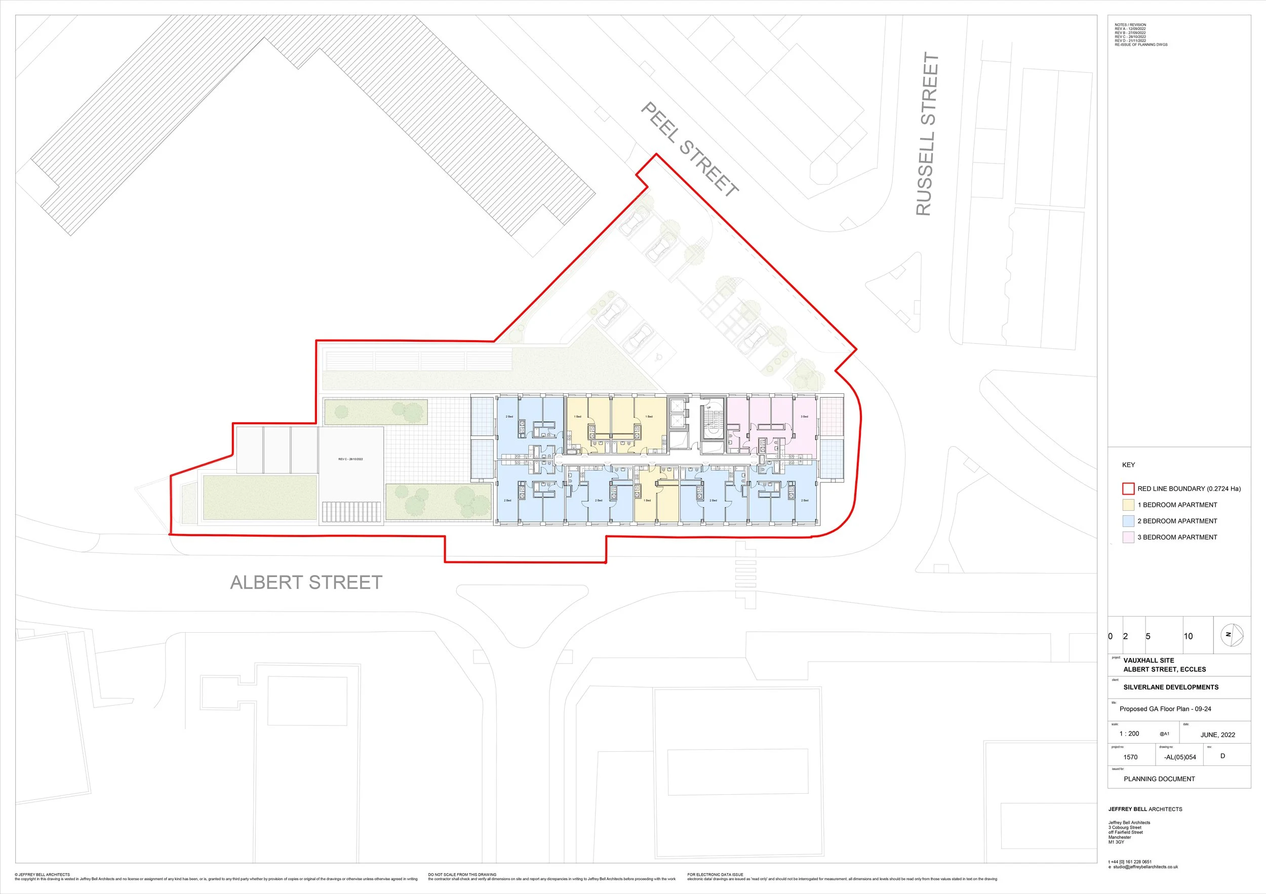 The development site is the former Vauxhall motor vehicle dealership, located on the north eastern edge of Eccles town centre addressing Albert Street to the immediate north, Albert Street to the east and the south and Peel Street to the west. Further north, Albert Street becomes a bridge over the M602 motorway;