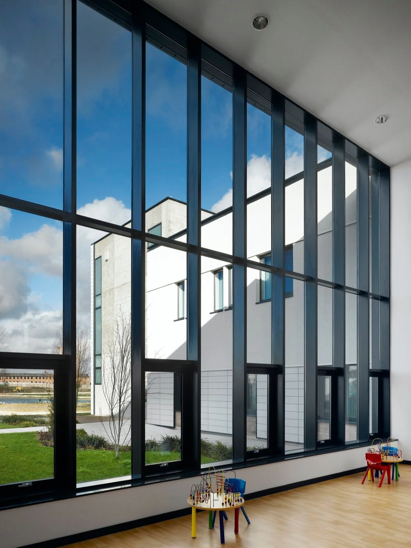The accommodation is arranged on 3 floors, with the principal health care accommodation located at the ground and first floors and a basement plant level, with a total gross external area of 2304m² and principally situated off the new back of pavement line to Old Mill Street at the junction with Vesta Street. The area of the site behind encompasses both secure public and staff parking facilities serving the healthcare facility and an access road off Old Mill Street to serve the designated facilities of the health centre and the New Islington Masterplan. Although located on raised ground, where the building acts as a marker in the landscape of the Masterplan, principal-level access is achieved to the main entrance doors.