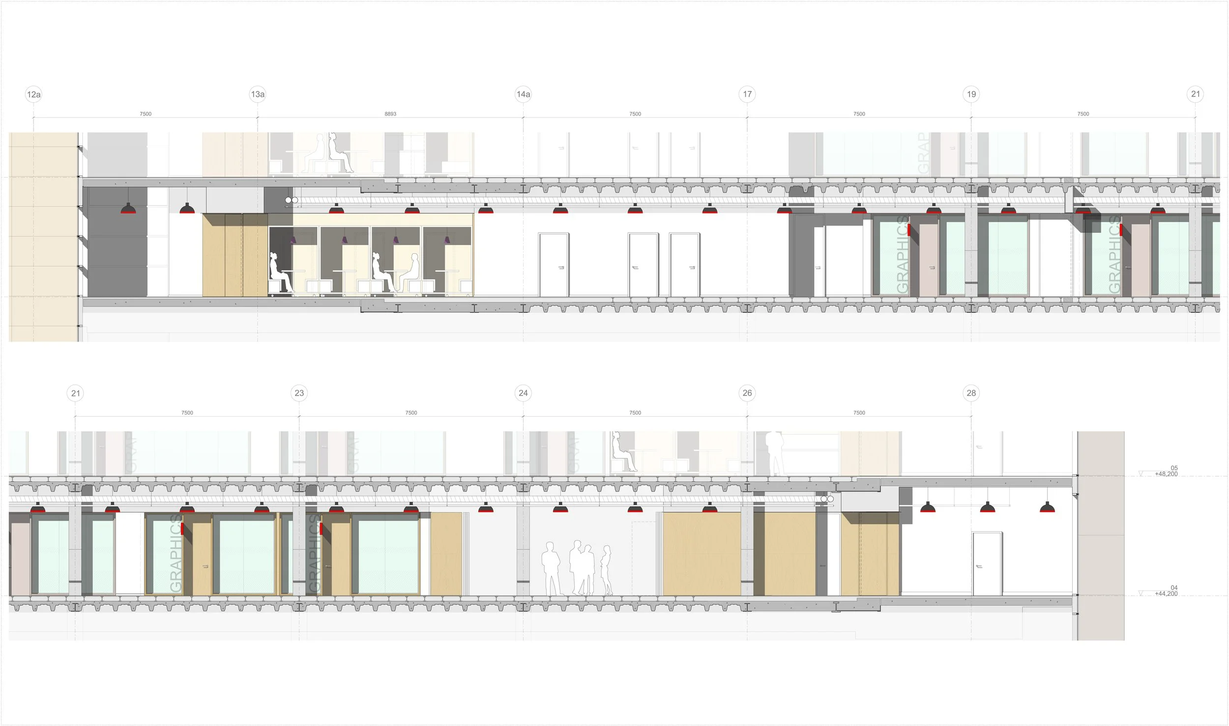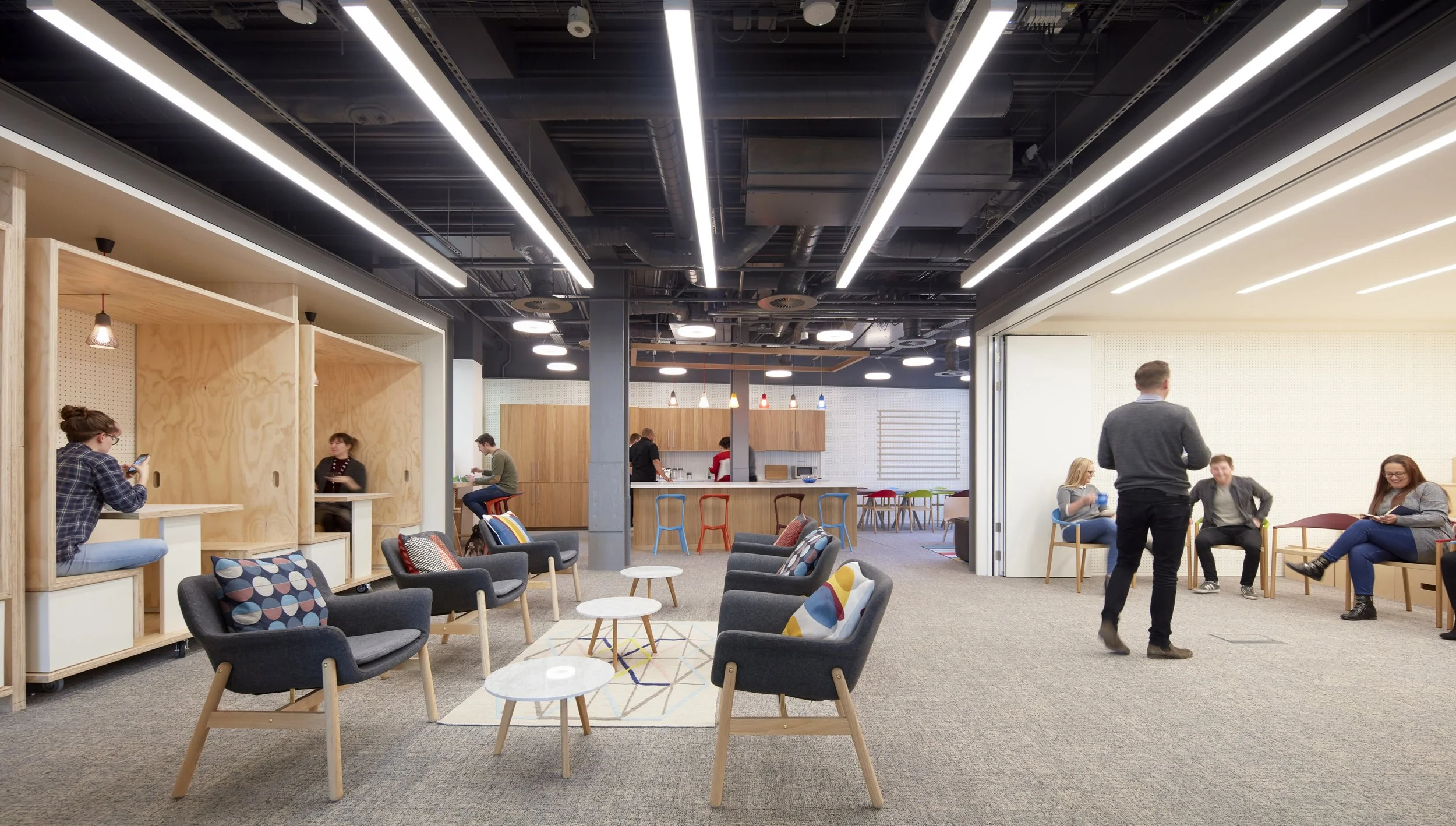 Culture is supported throughout the office by providing an open, varied and interactive floor plan. Because this space is a modern workplace, technology is highly prioritised throughout, and these elements are balanced with soft, informal workspaces and many natural elements. Overall, the building is designed with quality and invention in mind in order to promote the innovation and creativity of the users, while looking out for their well-being with the integration of important amenities throughout the space.