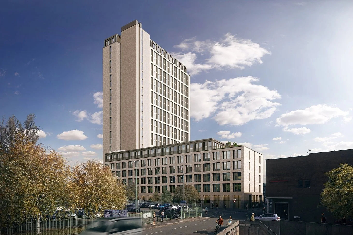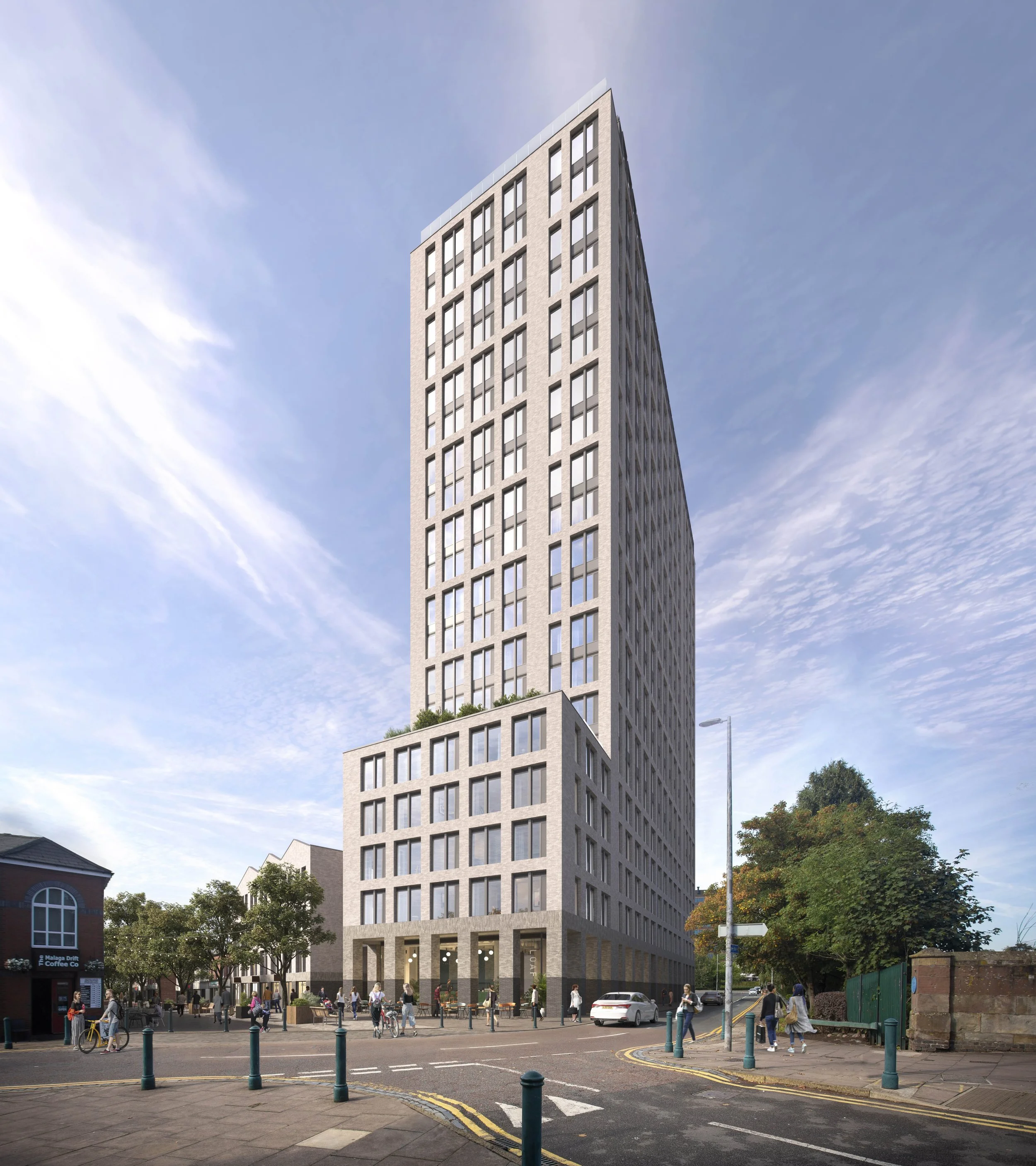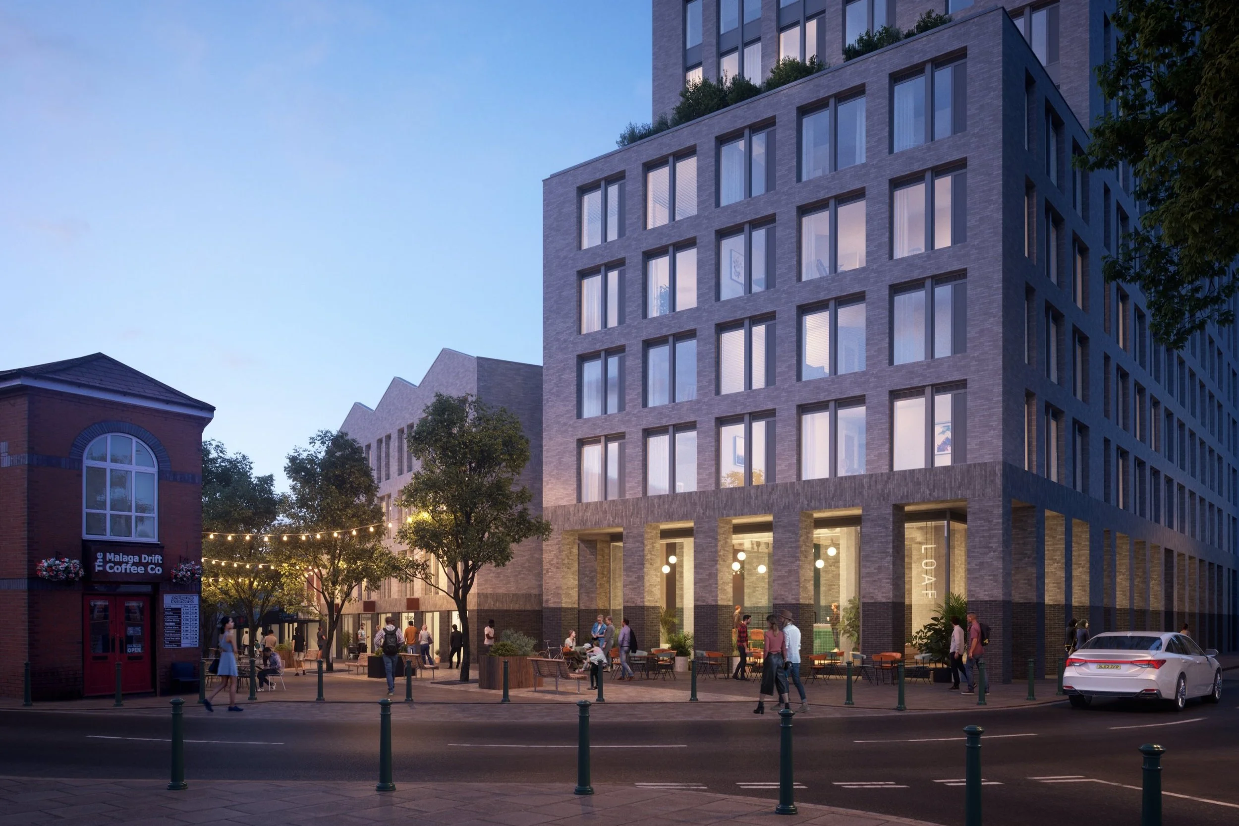 The architectural character and language of the new building is drawn from relevant and important local history; textile warehouses, coal mining and engineering. By drawing on the warehouse typology, interpreted into a modern architectural language, the new building through its scale, layered façade and detailing will contribute positively to the local and wider context. An external language of brick, masonry and metalwork with deep set window reveals reflects a more robust, ‘converted industrial’ aesthetic.