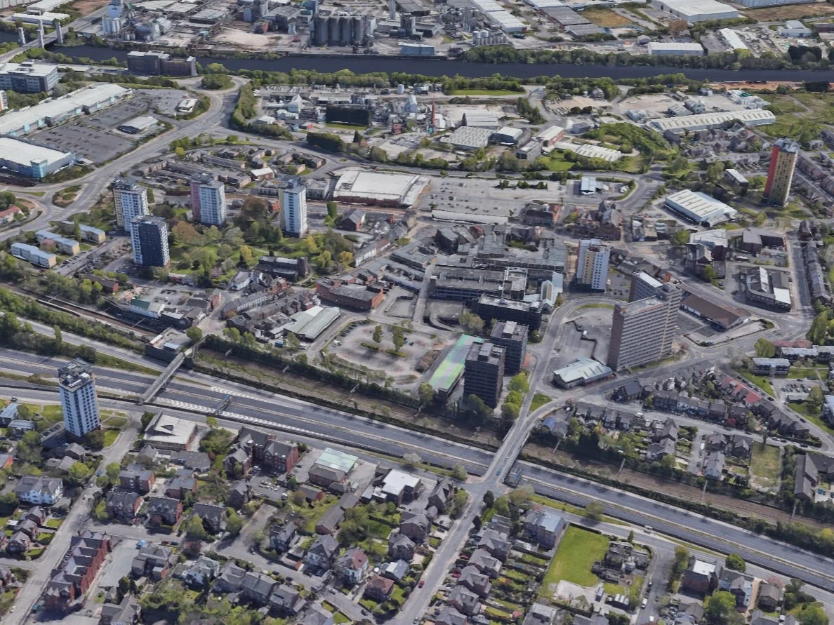 To the north of the site is the M602 motorway connecting Manchester and Liverpool; running side by side with the motorway is the rail link that connects Manchester and Liverpool.