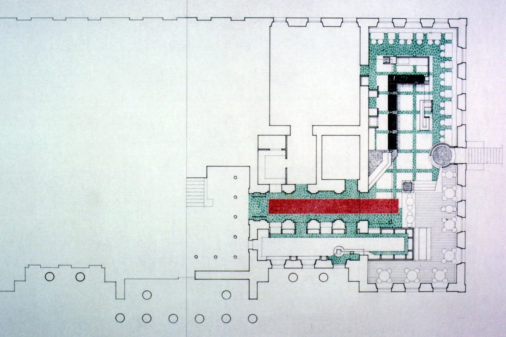 The bookshop and café have proven to be a great advantage in terms of increased visitor numbers. This was the first significant architectural intervention in the Gallery. Unfortunately, the café was lost as a result of the major reworking of the whole gallery complex in 2002.