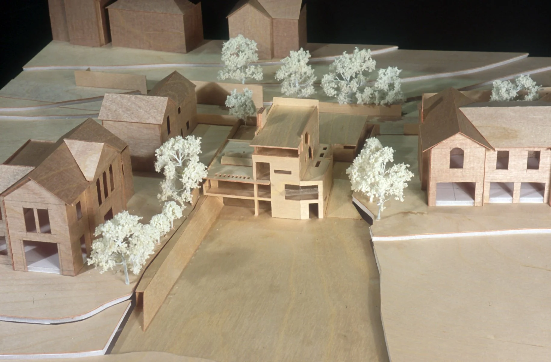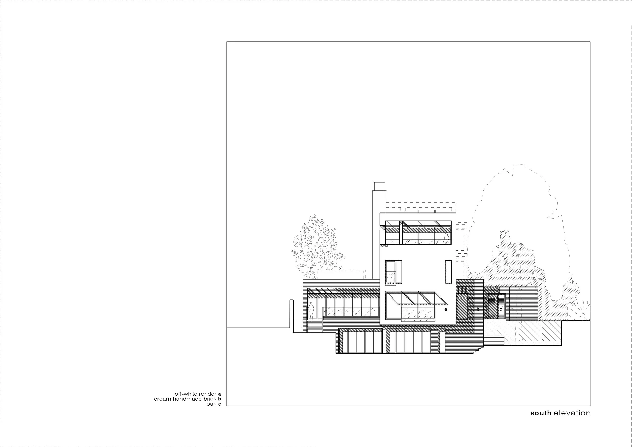 Behind the wall, the tallest element was placed equidistant from the adjoining houses and was comparable in height with them. The building nestled into the considerable southward-facing slope and presented three storeys from the roadside and four storeys from the garden side. The footprint was equivalent to the smaller Victorian houses to the east of the site; however, it was partially masked by the high boundary wall to the perimeter of the site.
