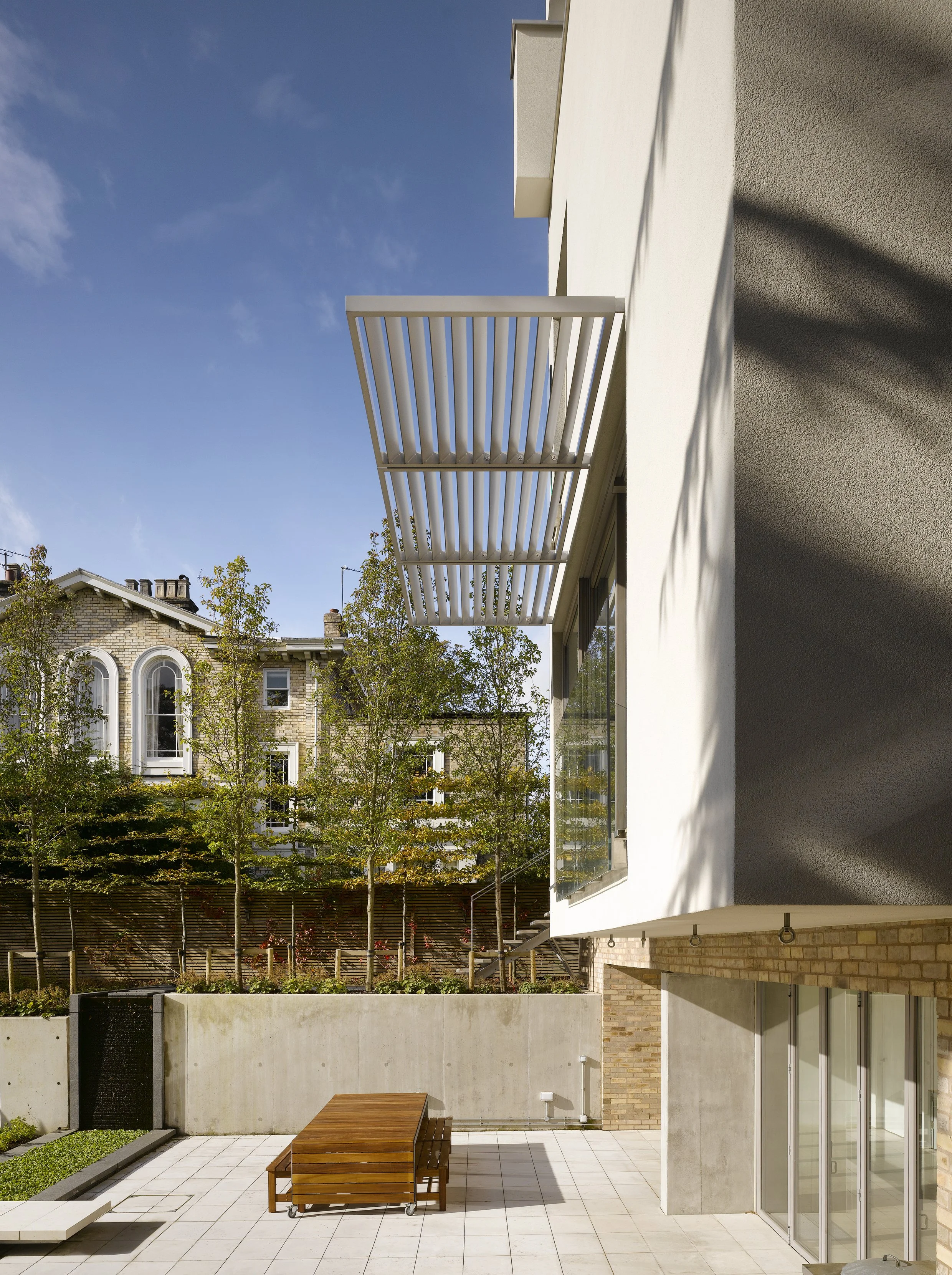 The design used a palette of buff brick with flush lime/sand mortar and render, which took its lead from the listed properties in the immediate proximity which used stucco and light buff brick.