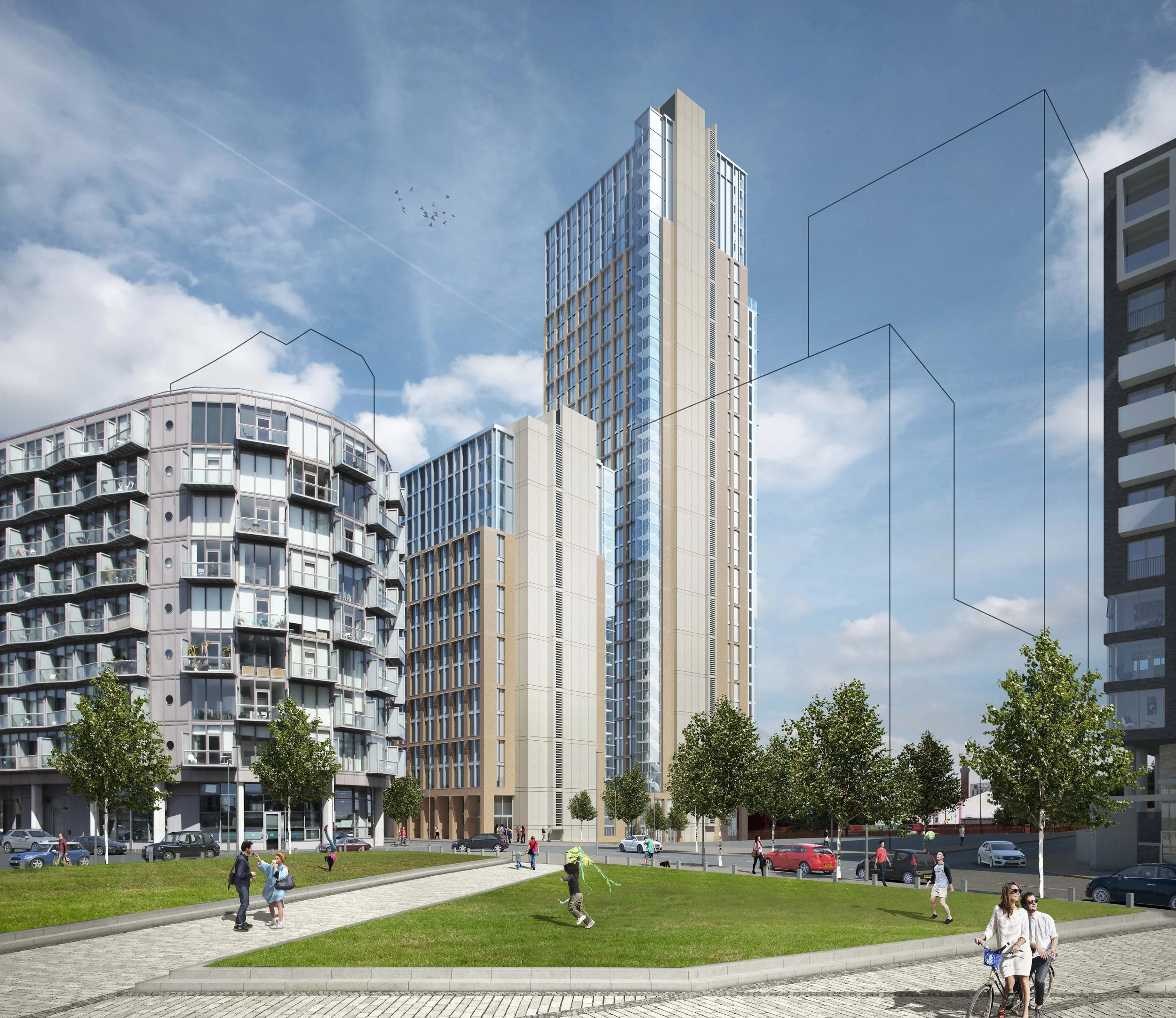 This proposal for a mixed-use development comprises 300 no. residential apartments, 473.5 m² of commercial floor space in two units of use categories Al, A2, A3 and B1), one level of semi-basement car parking providing 31 no. and a private landscaped courtyard with separate river frontage.