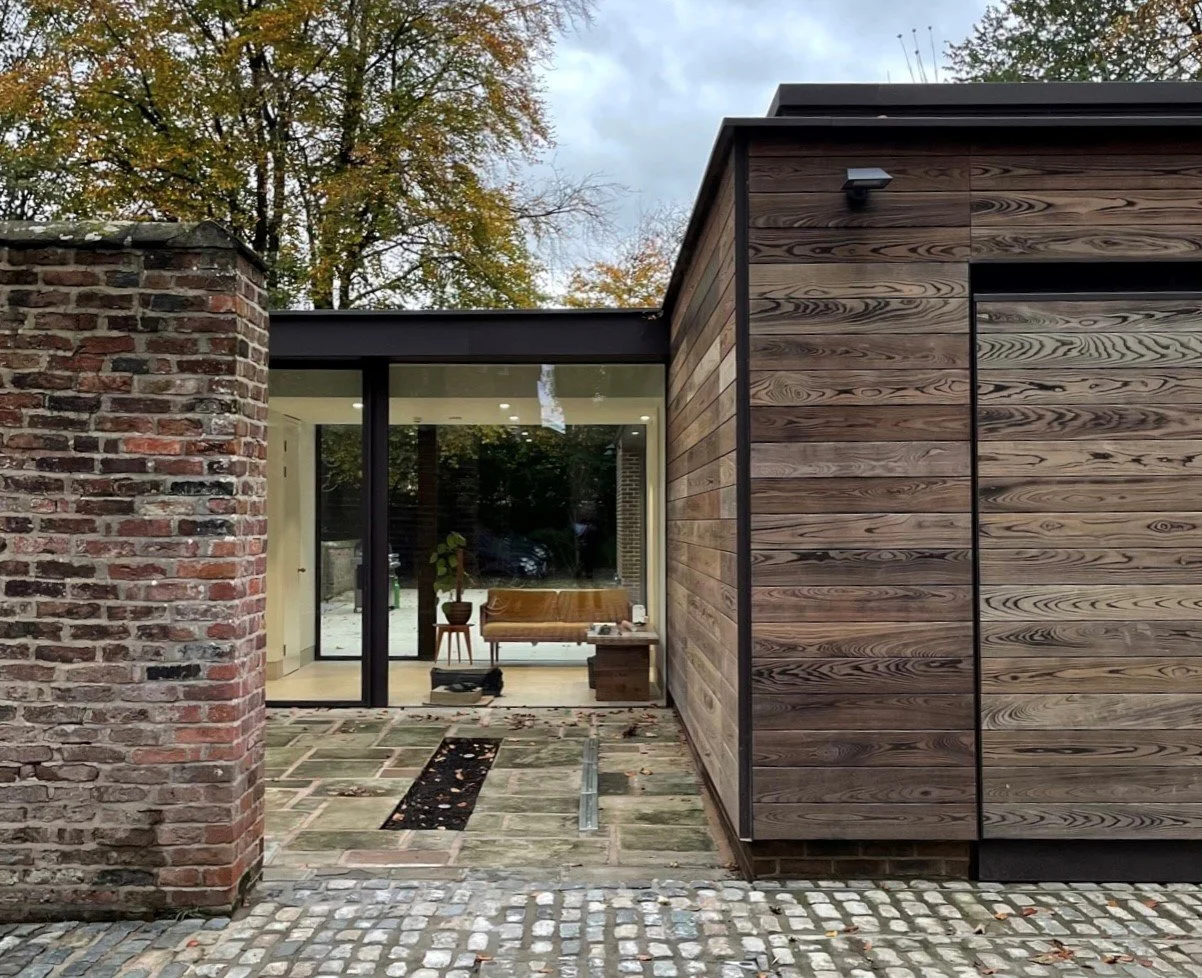 During this initial review a new brief emerged which sought to provide increased car storage, a new leisure suite and an improved open-plan family and kitchen space that could make better use of an existing rear courtyard during the summer months. This new brief offered the opportunity to remove an unloved and unsympathetic addition to the hall that was inherited by the client.