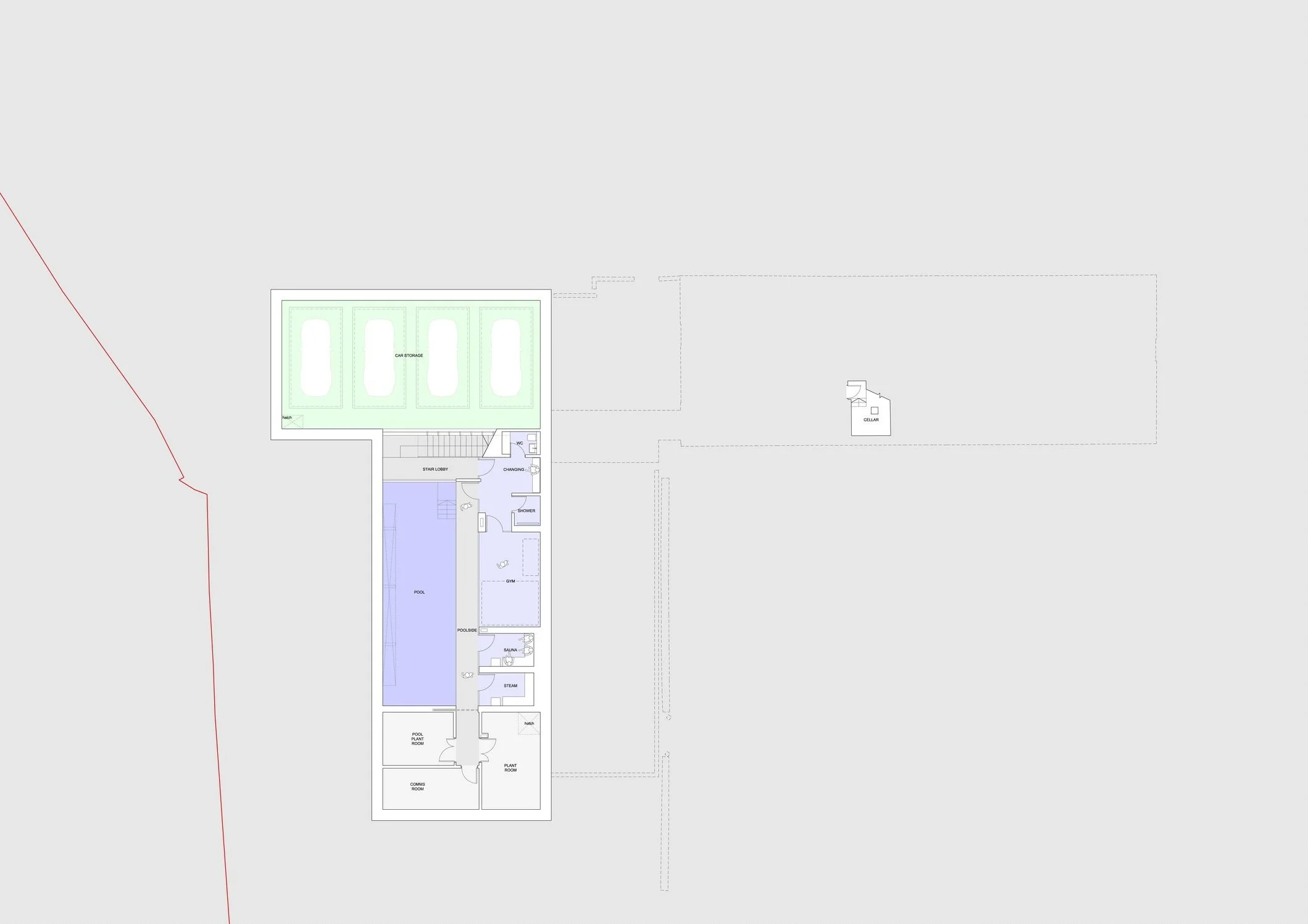 The original brief evolved from the client’s requirement to improve the capacity to store an increasing personal car collection. Initial studies reviewed amendments to the existing garage structure to accommodate this. The result of these initial studies concluded amendments to the existing garage could not practically accommodate the increased car storage requirements.