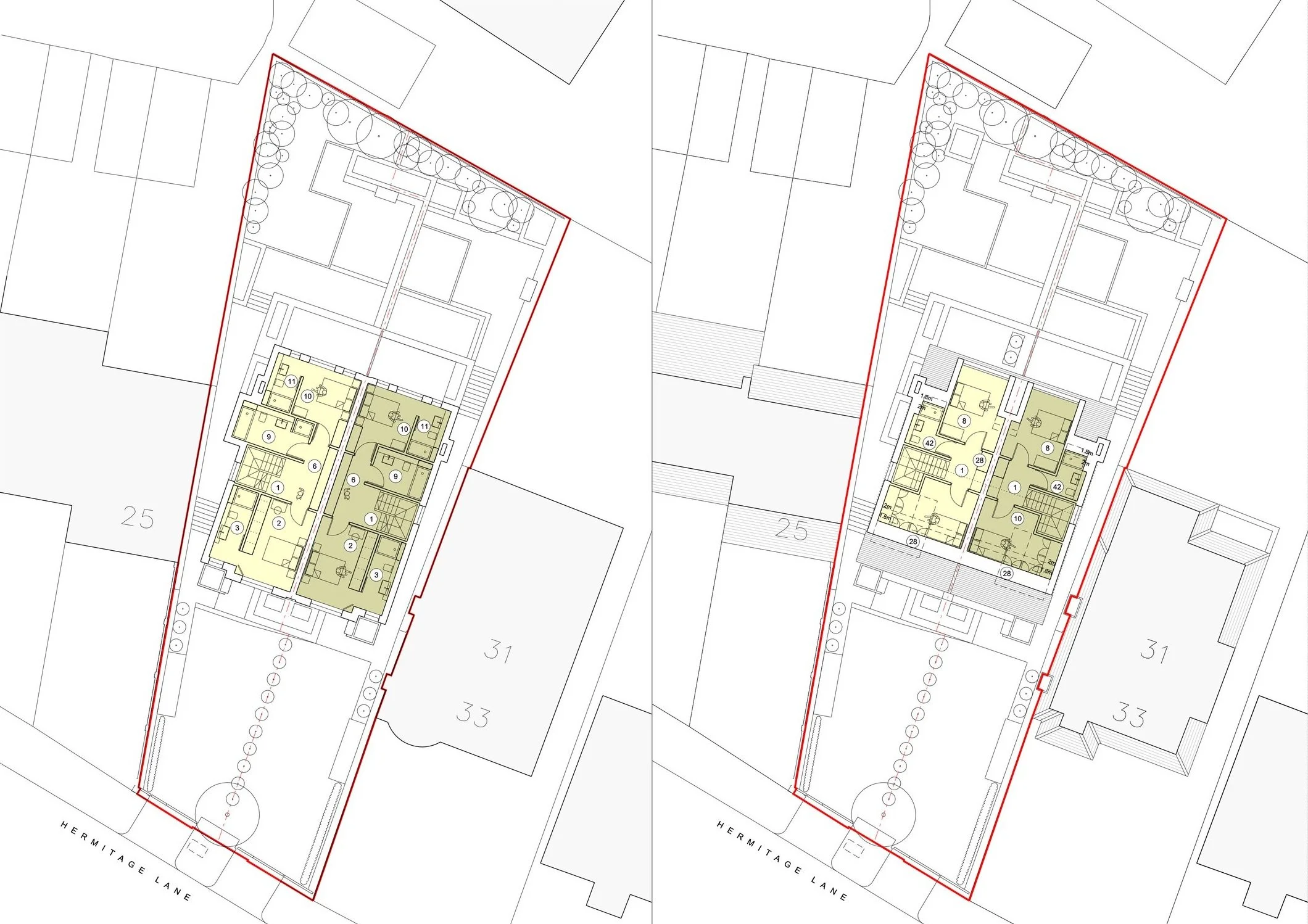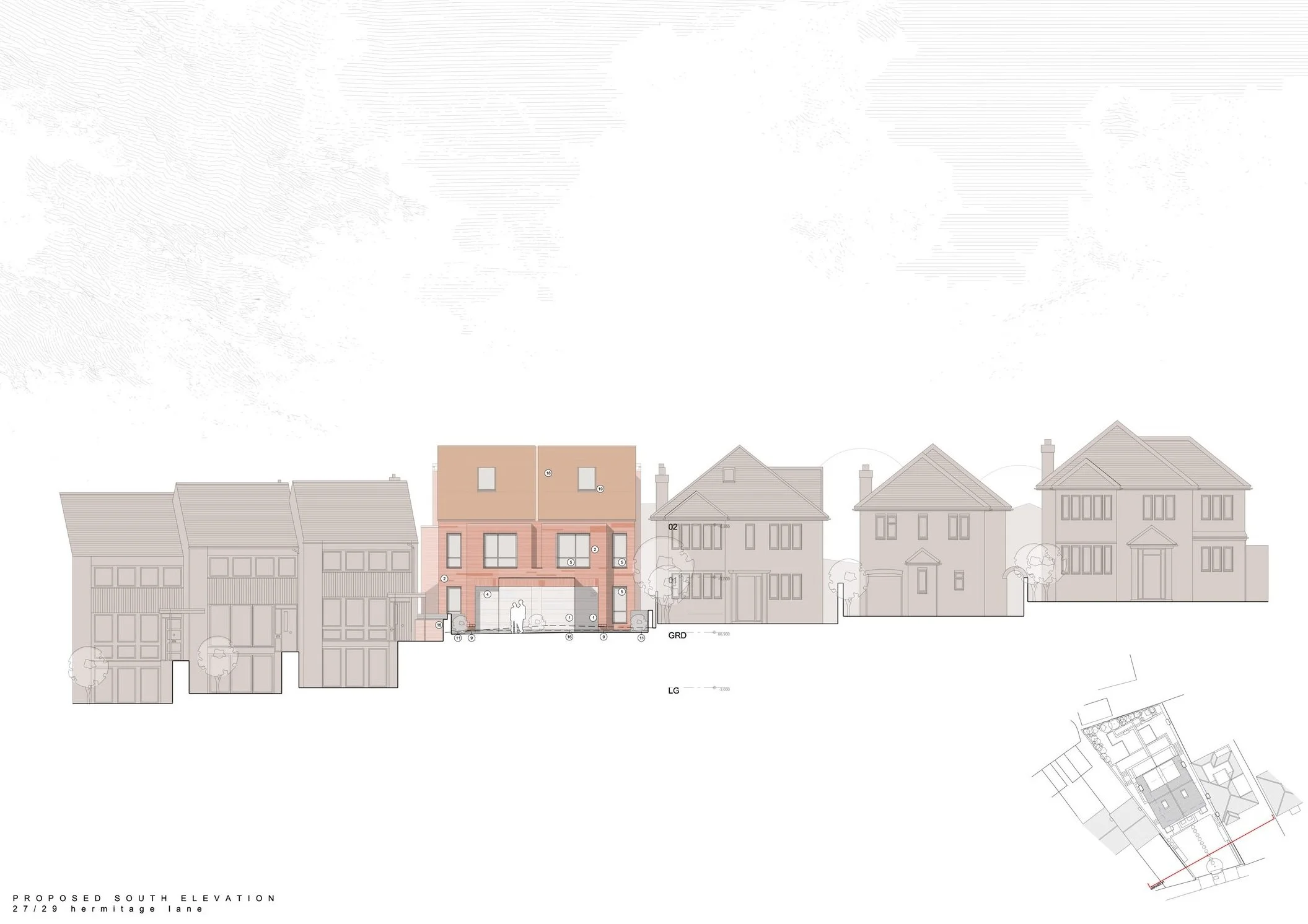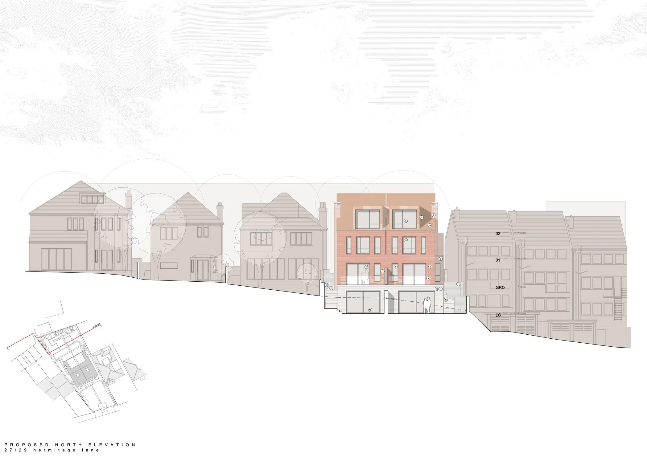 Situated on Hermitage Lane, Childs Hill close to Hamstead Heath in north London, this very tight suburban site contained a detached property constructed in 1933 and split into apartments.