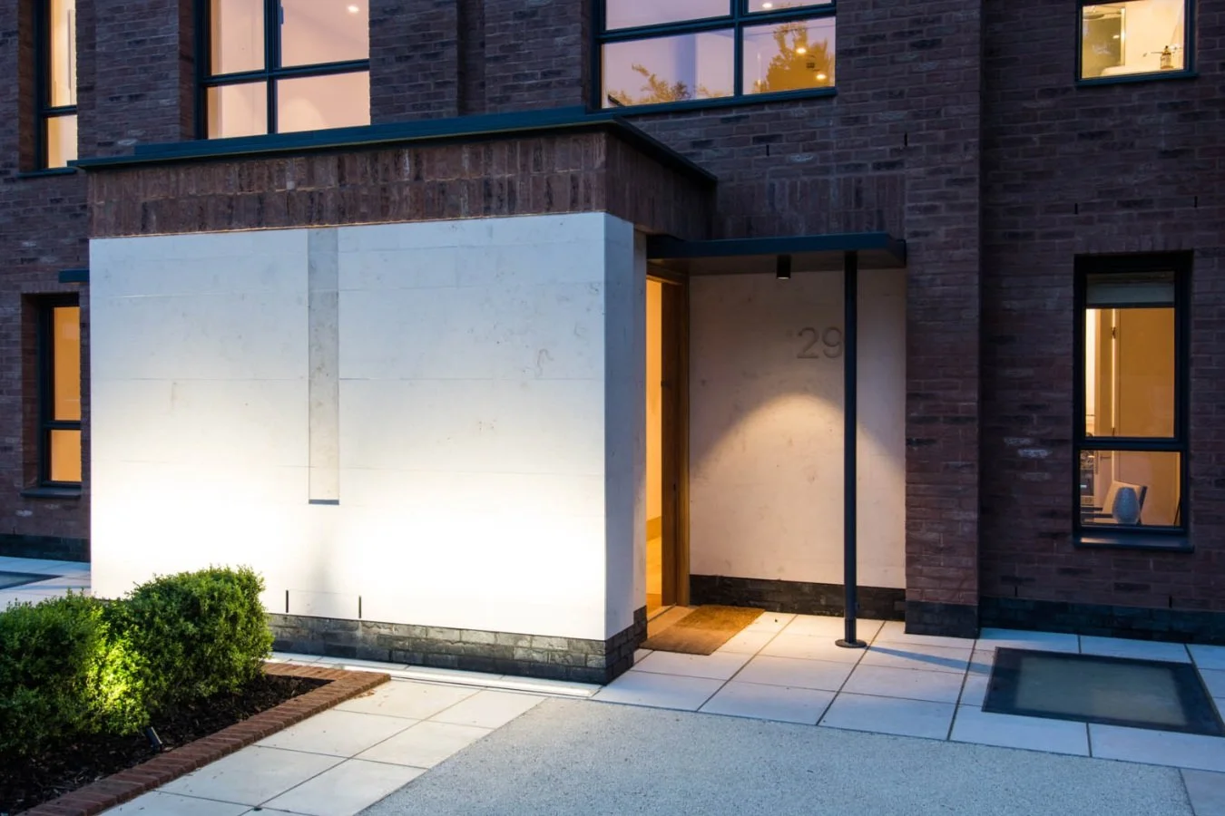 Based on an exploration of the immediate context and an examination of the adjacent typologies, the proposed form emerged as an “urban villa” set back from the pavement; contemporary in its language and of its time. Three primary elements; the floating metal pitched roof over a solid brick enclosure with a projecting stone porch alludes to a pedimented period villa. The facade, composed of layers, is more formal to the front, but less ordered to the rear.