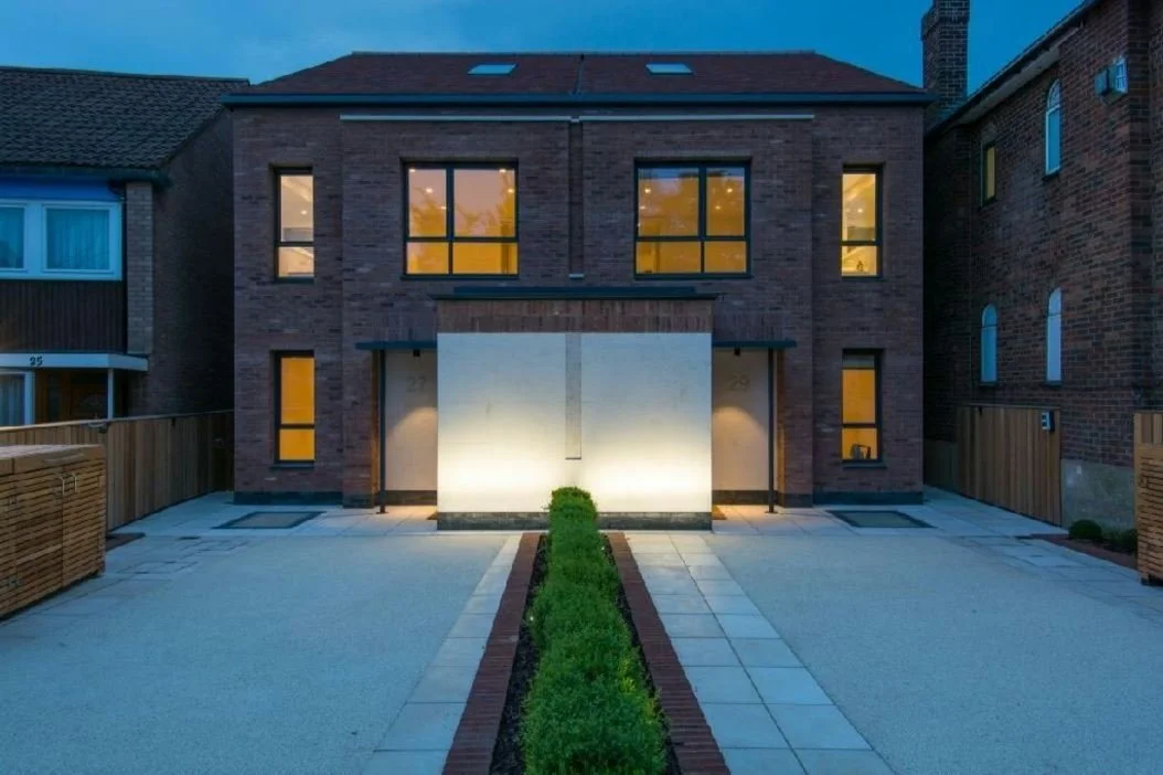 The client’s brief required the demolition of the existing detached property and the construction of two semi-detached dwellings with each new dwelling comprising of a lower ground floor living room, ground floor living rooms, two first-floor bedrooms and two attic storey bedrooms.