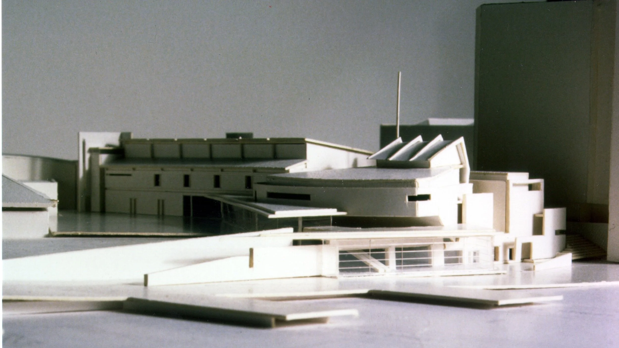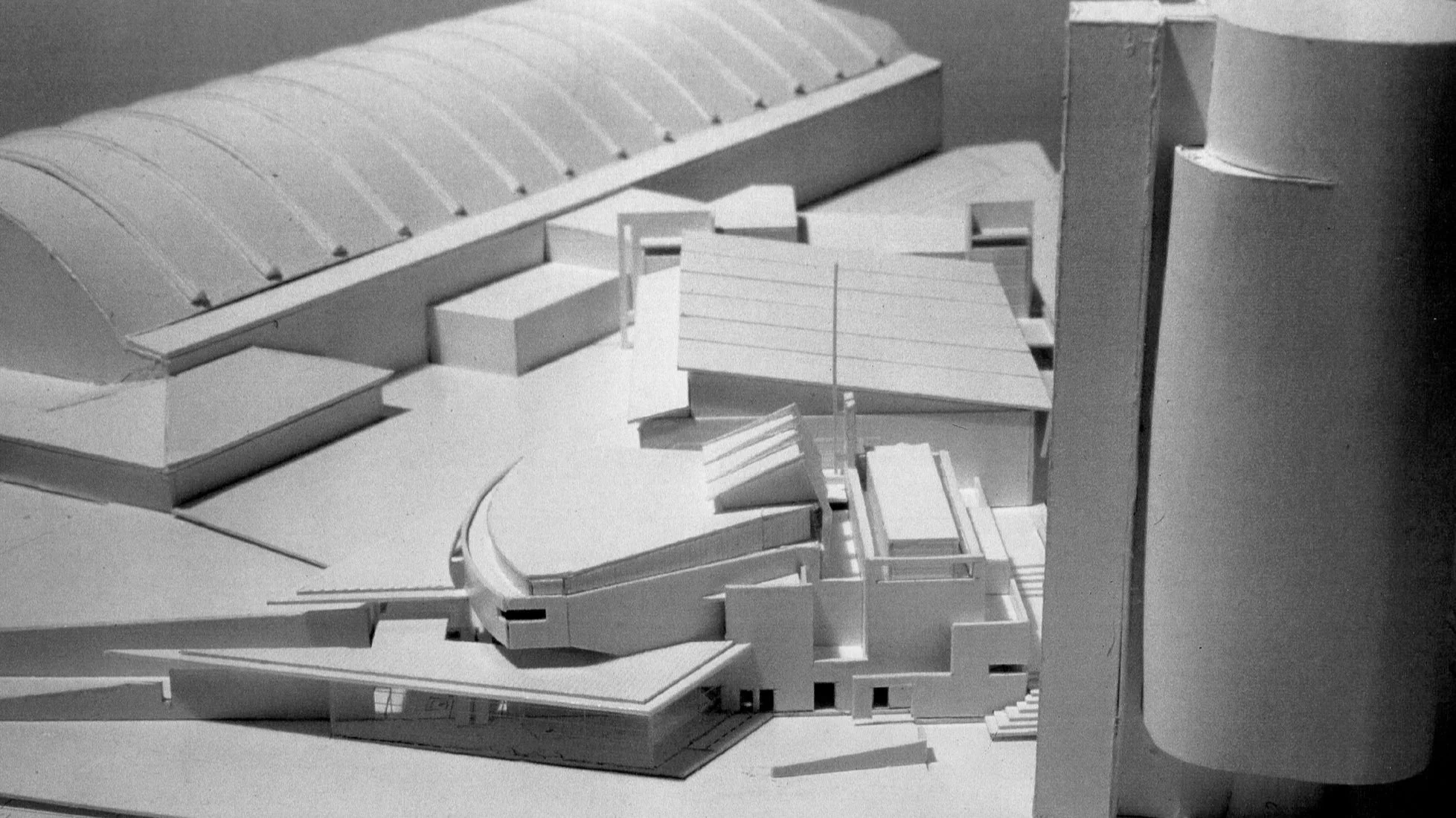 The street geometry together with the incline of the site was a key generator of the architectural expression. The site features are expressed by the flat roof plates of the foyer spaces which give focus to the vertically spiraling articulation of the geometric forms.