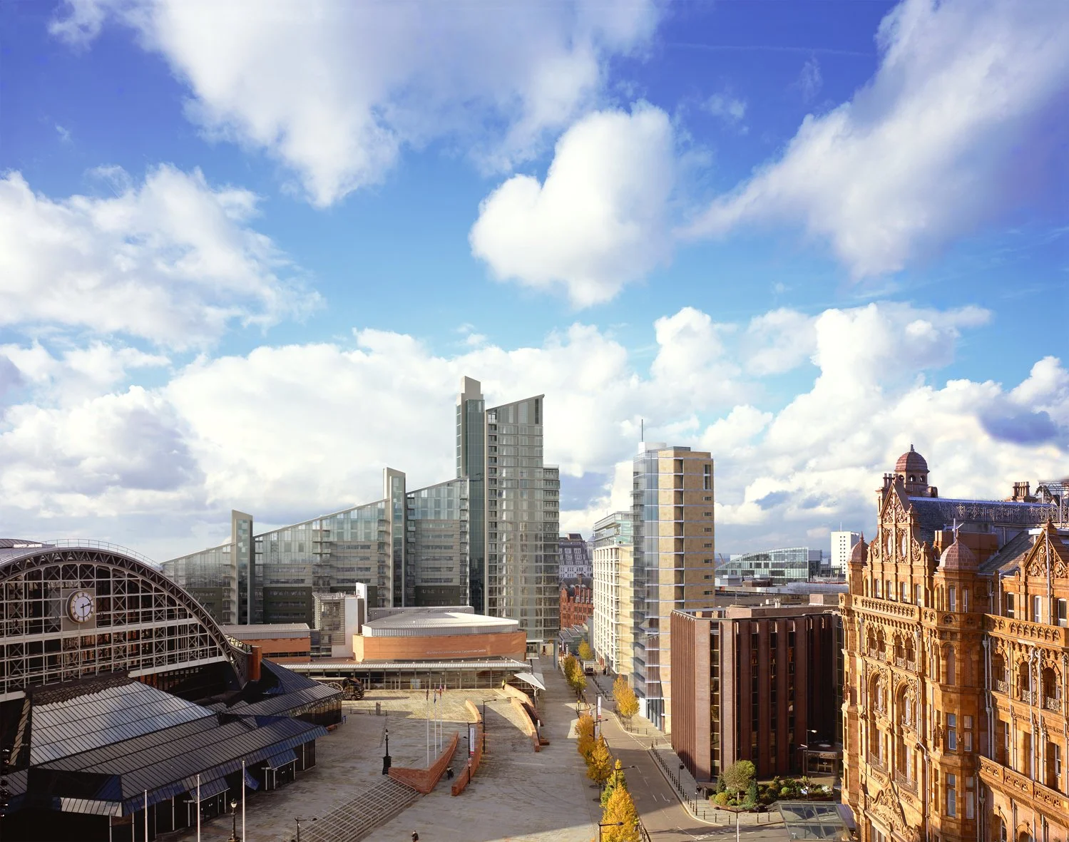 The MICC is situated on the site of a former railway terminus which formed a plateau rising approximately 4m above the inclining Windmill Street. The site is situated at the juxtaposition of the city’s two dominant street grids which intersect at 20˚ to each other. The design also had to relate to the large pavilion buildings of the Bridgewater Hall, G-Mex and the Great Northern Warehouse which form the key elements of the Great Northern Initiative, a 45,500m² city centre regeneration site.