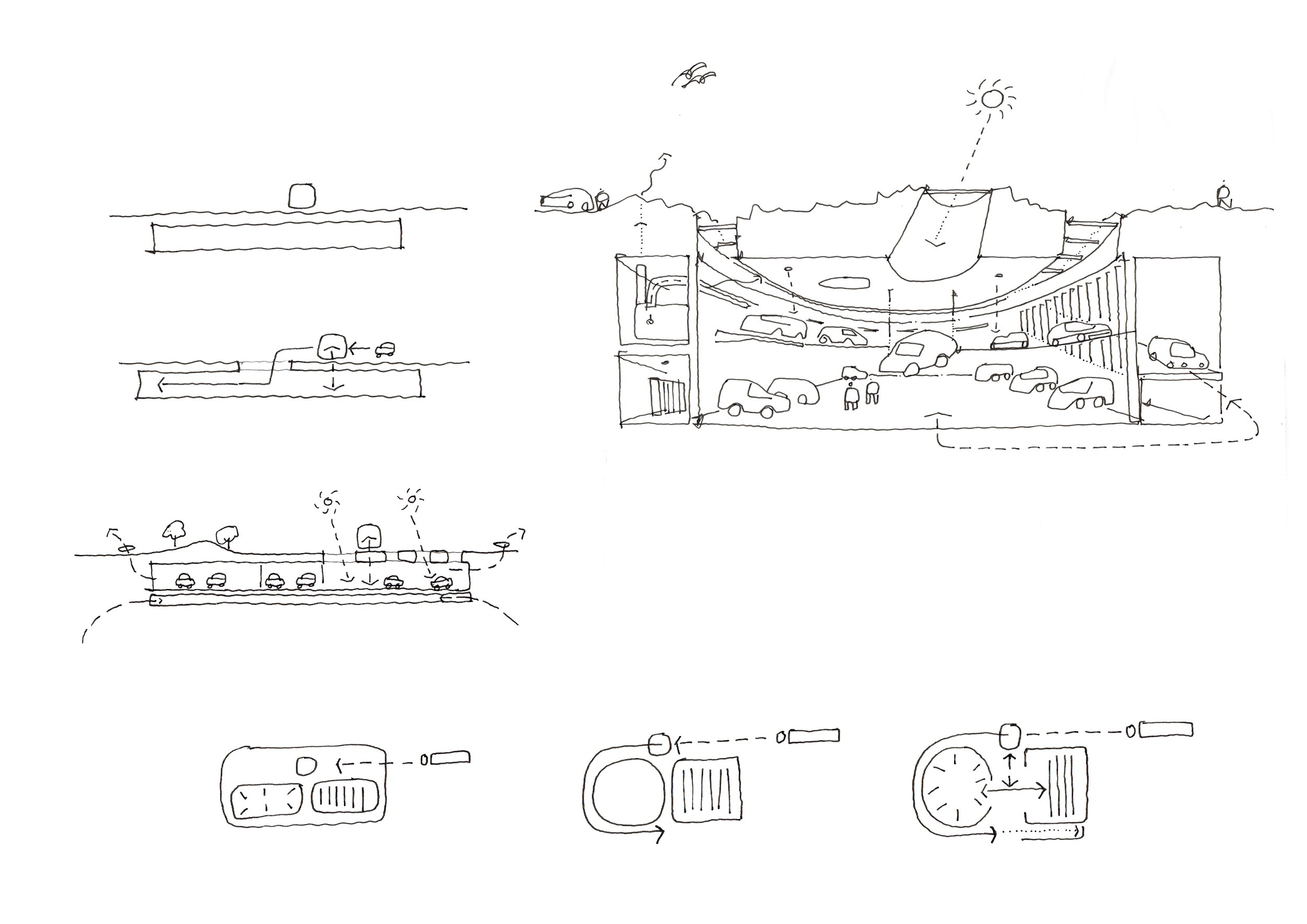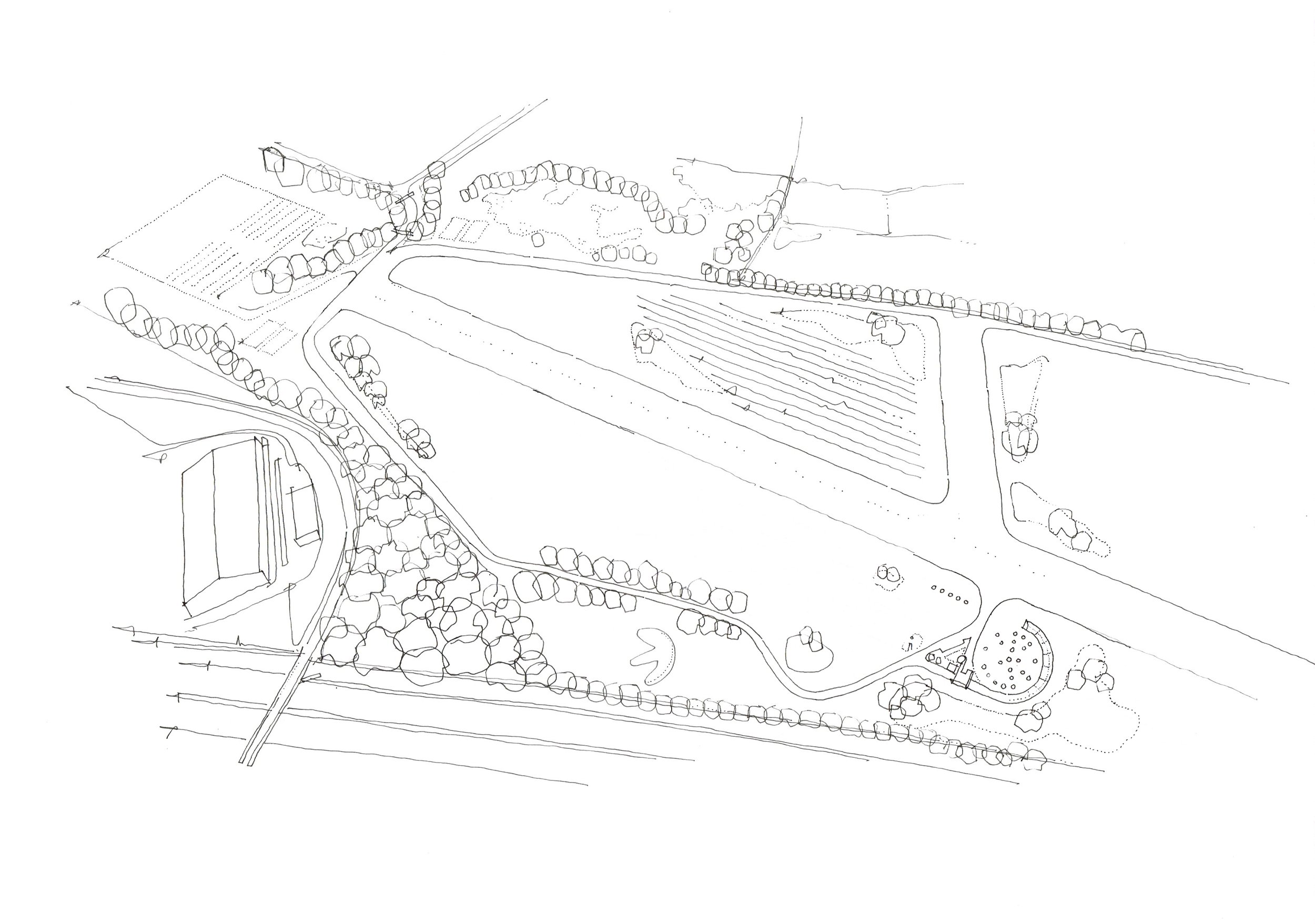 The proposal comprises of two primary components; a private subterranean car storage and display facility and an above-ground ancillary private office building. The car storage and display is divided into two separate zones; a generally orthogonal car parking area which provides longer-term storage and an area that provides a facility for the display of a lesser number of vehicles in a gallery environment. The office building provides private office facilities for the owner. A ramp adjacent the office building provides access for vehicles to the subterranean space. The development appears as a grouping of low-rise, pitched roof buildings; an allusion to a grouping of agricultural buildings set within enhanced screening landscape and water features that assist in significantly reducing the visual impact of the proposals.
