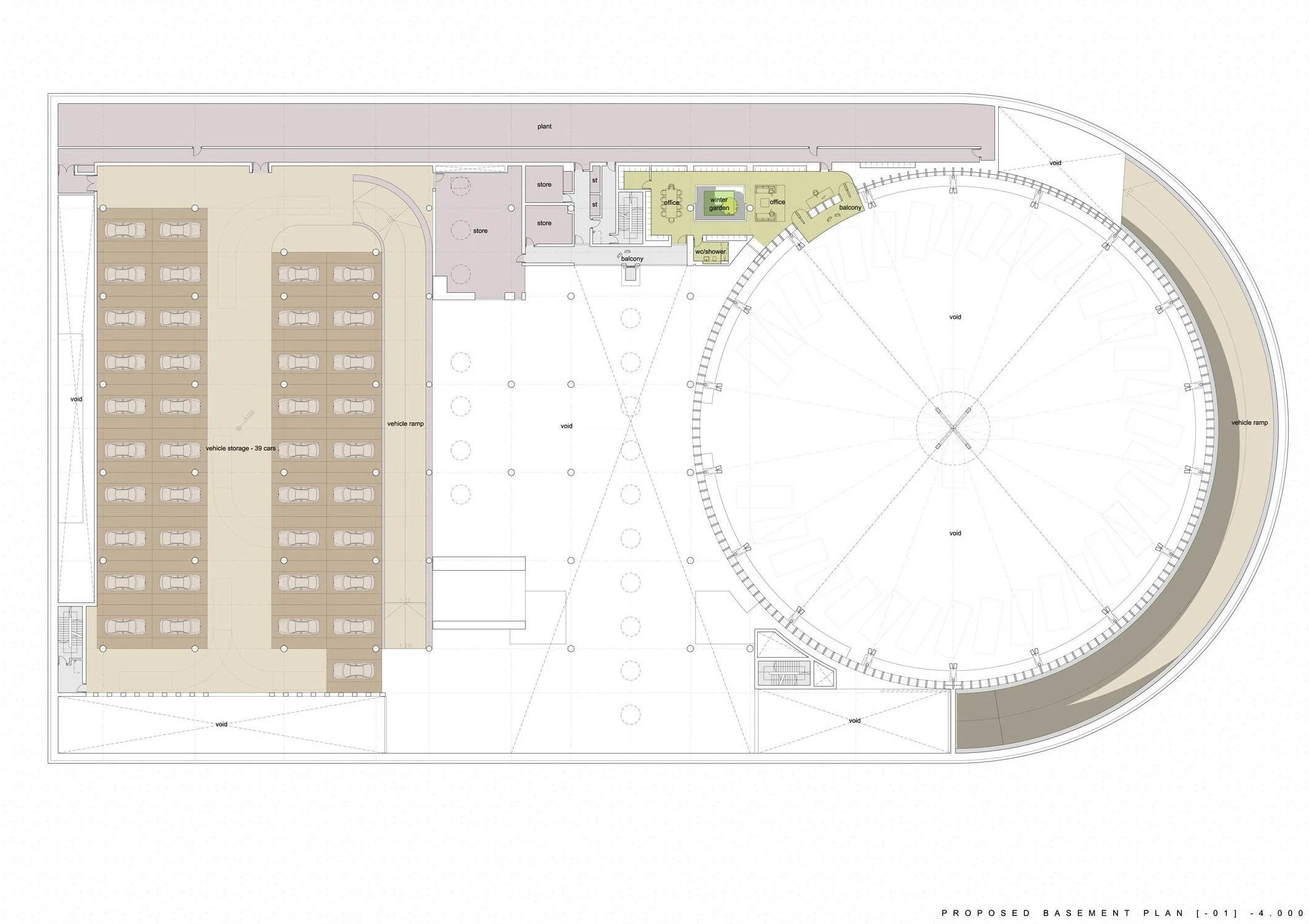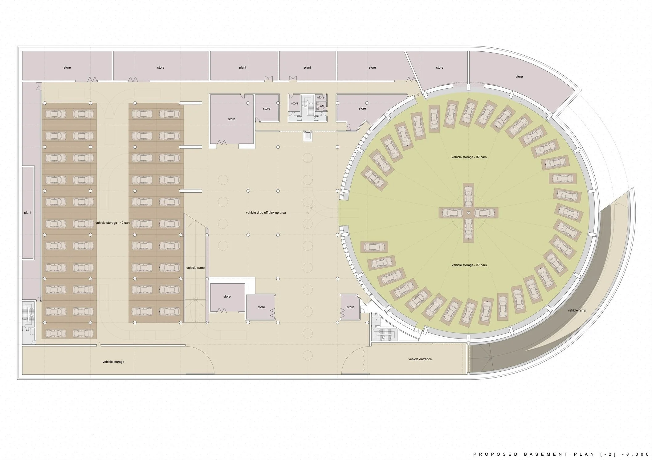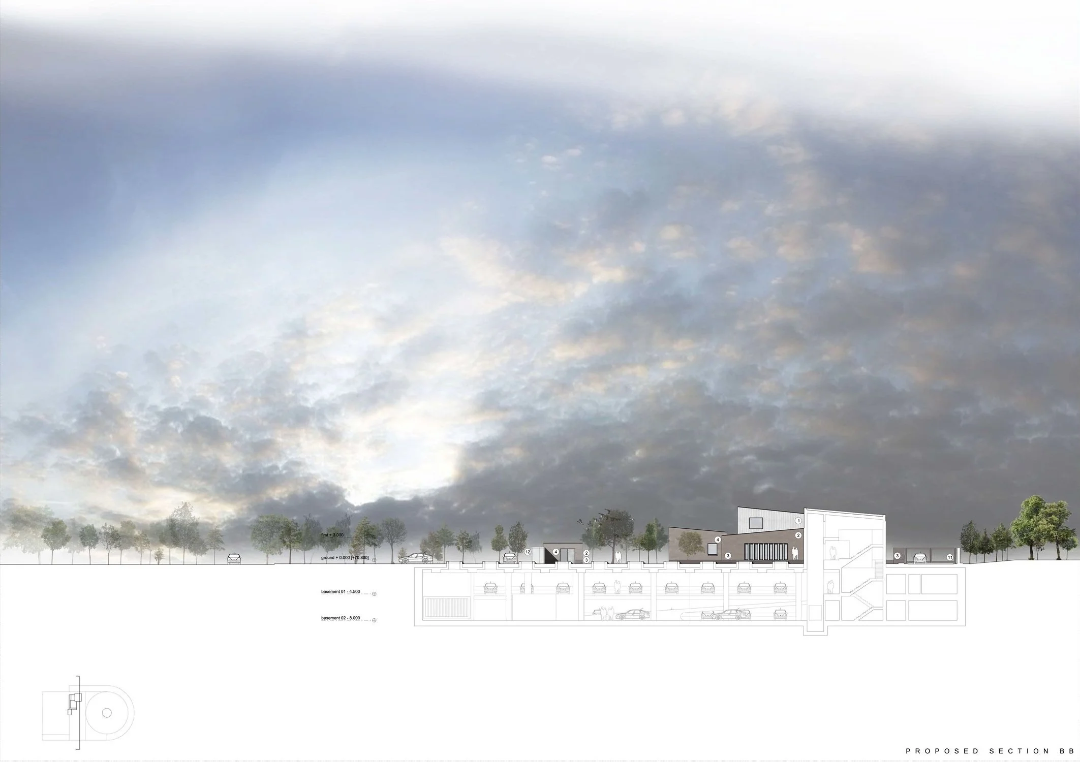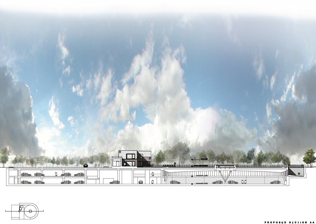 In 2012 the site was sold to a private individual with the insertion of housing a collection of classic cars. The brief involved the creation of a private subterranean vehicle storage and display facility that would accommodate approximately 100 cars along with an above-ground private office. Below-ground accommodation would be entered by a vehicle ramp from ground level. Pedestrian access will be provided by lift and stairs. The development is for the sole use of the owner.