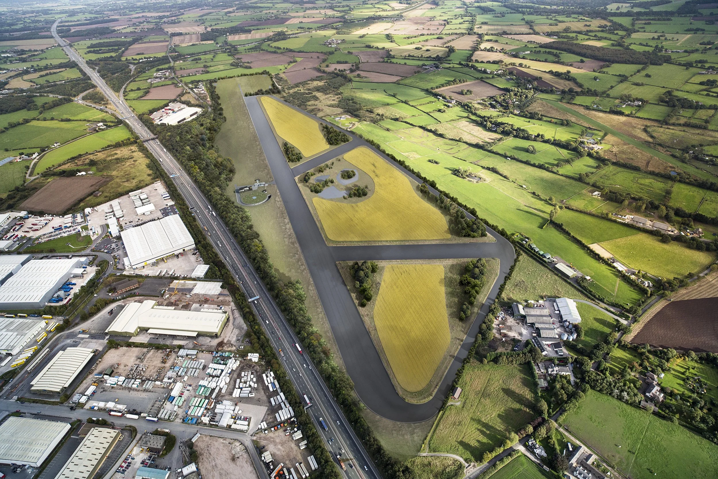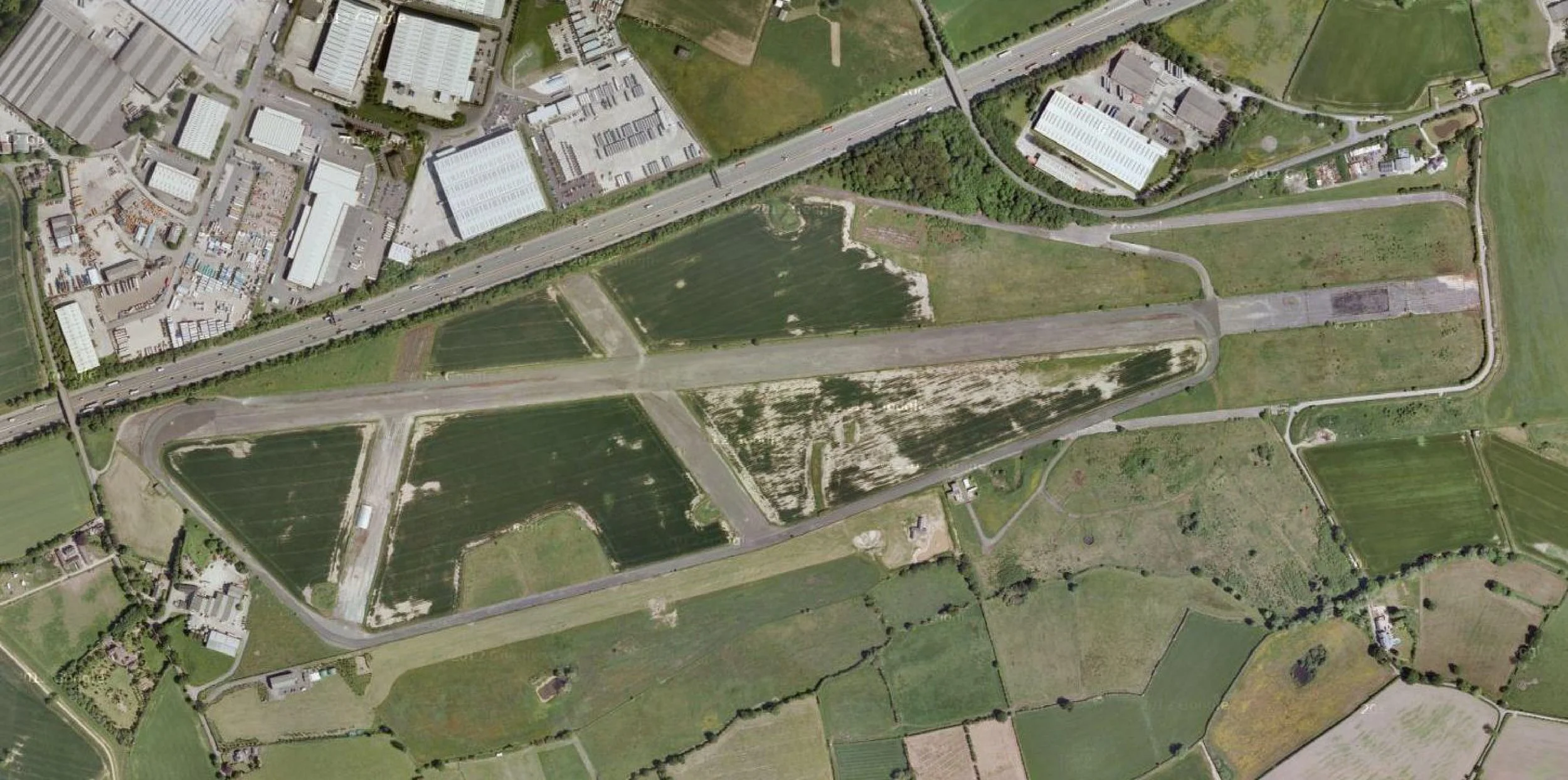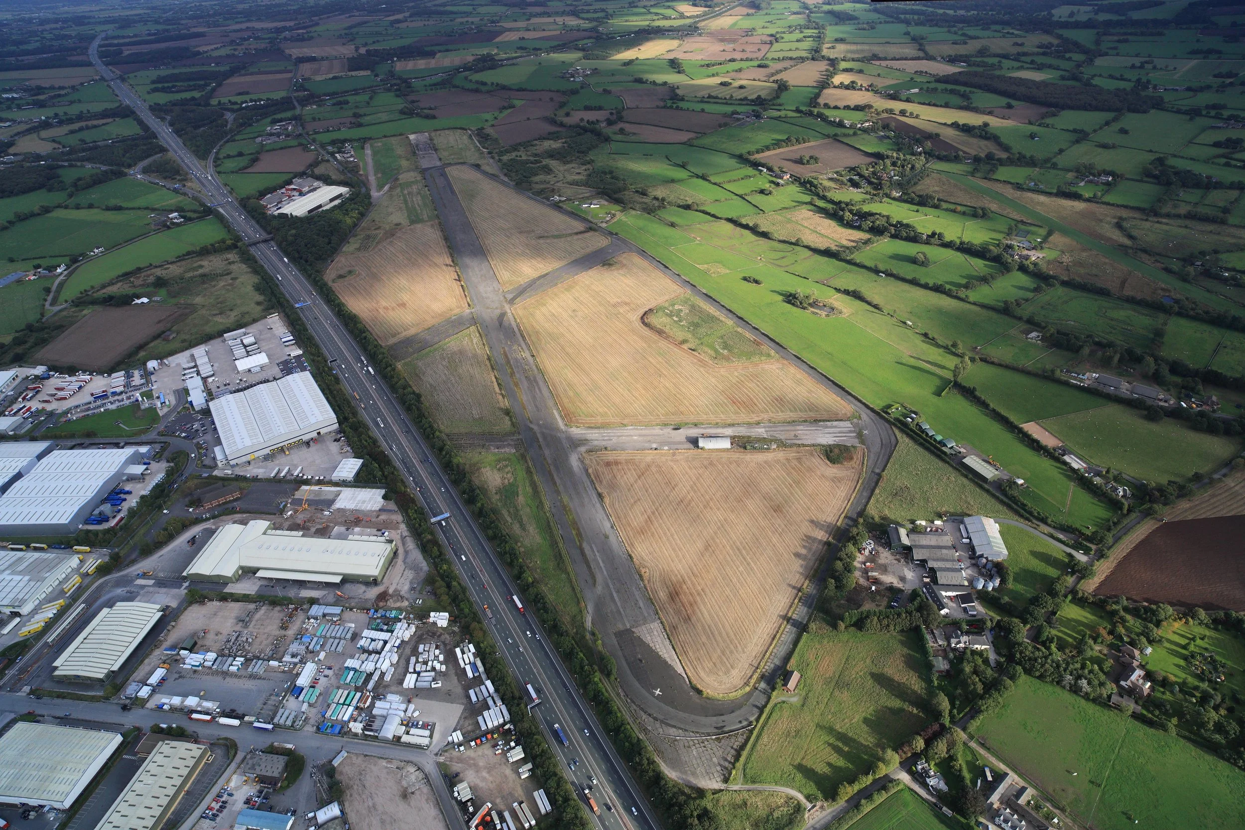 The site is located to the immediate south of M56 close to junction 20 of the M6 motorway and its intersection with junction 9 of the M56 motorway; it extends to approximately 71.63 hectares 177 acres and comprises of the former runway (5,000ft by 100ft) and ancillary taxi-ways and paved areas. The areas between the runway and taxi-ways being used as agricultural land.