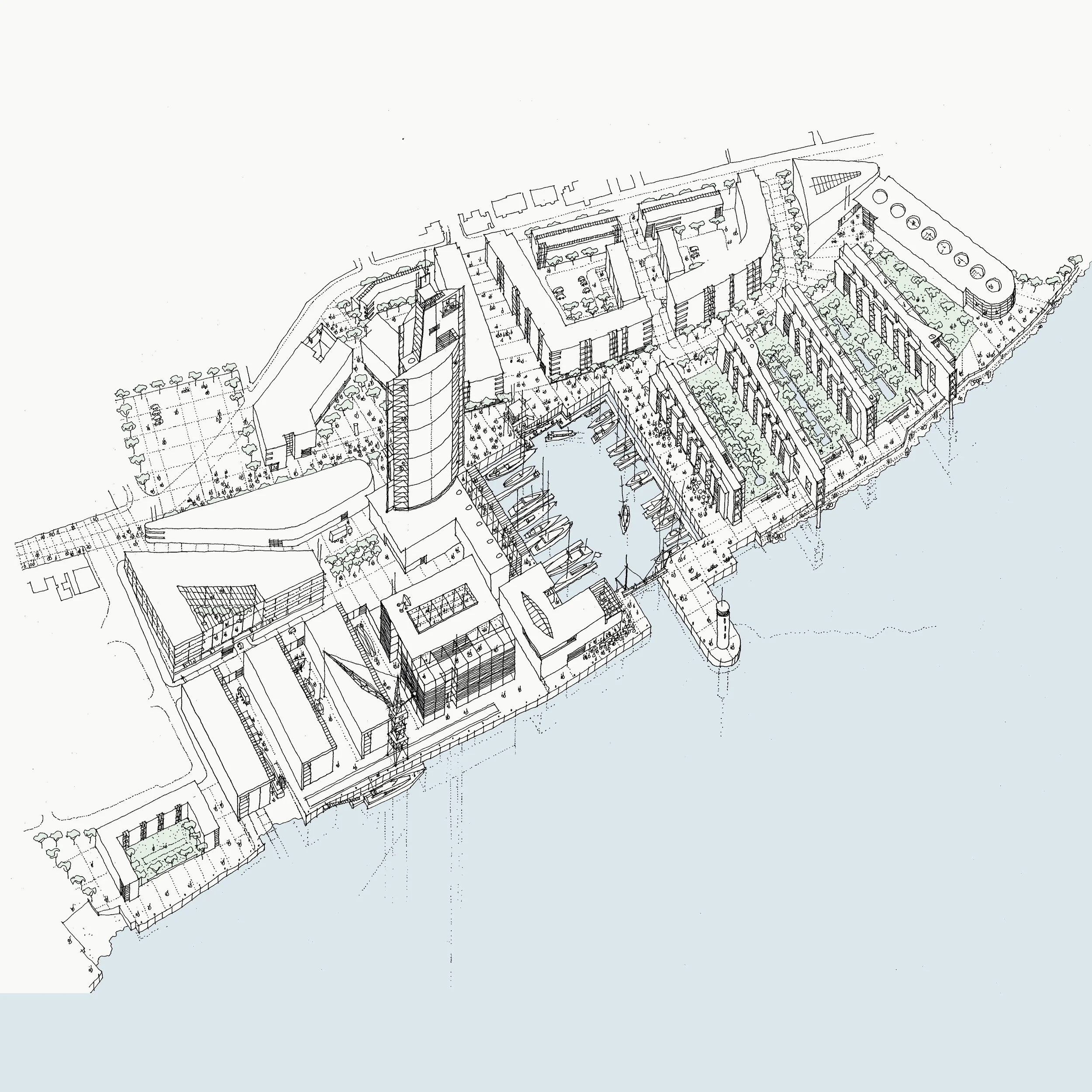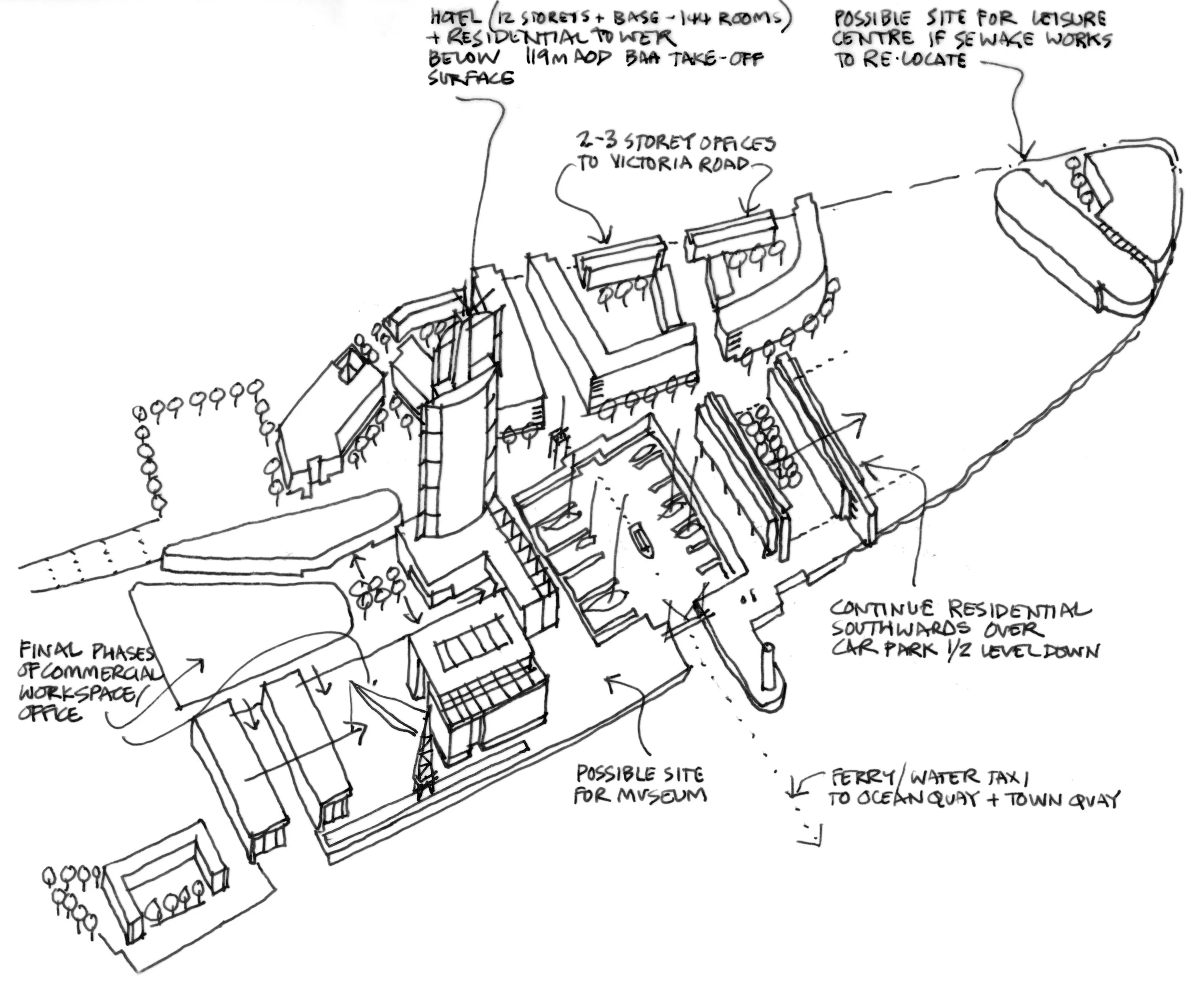 The proposals respond to the brief in providing residential, commercial, hotel, retail, leisure and marine based industrial accommodation. The Fit Out Trades Complex building is retained and reused in a first phase which includes the creation of the new big boat marina. The 32 story hotel and residential tower created an iconic landmark for the development, with smaller residential blocks responding directly to the waterfront location; 75% of the apartments have views of the River Itchen.