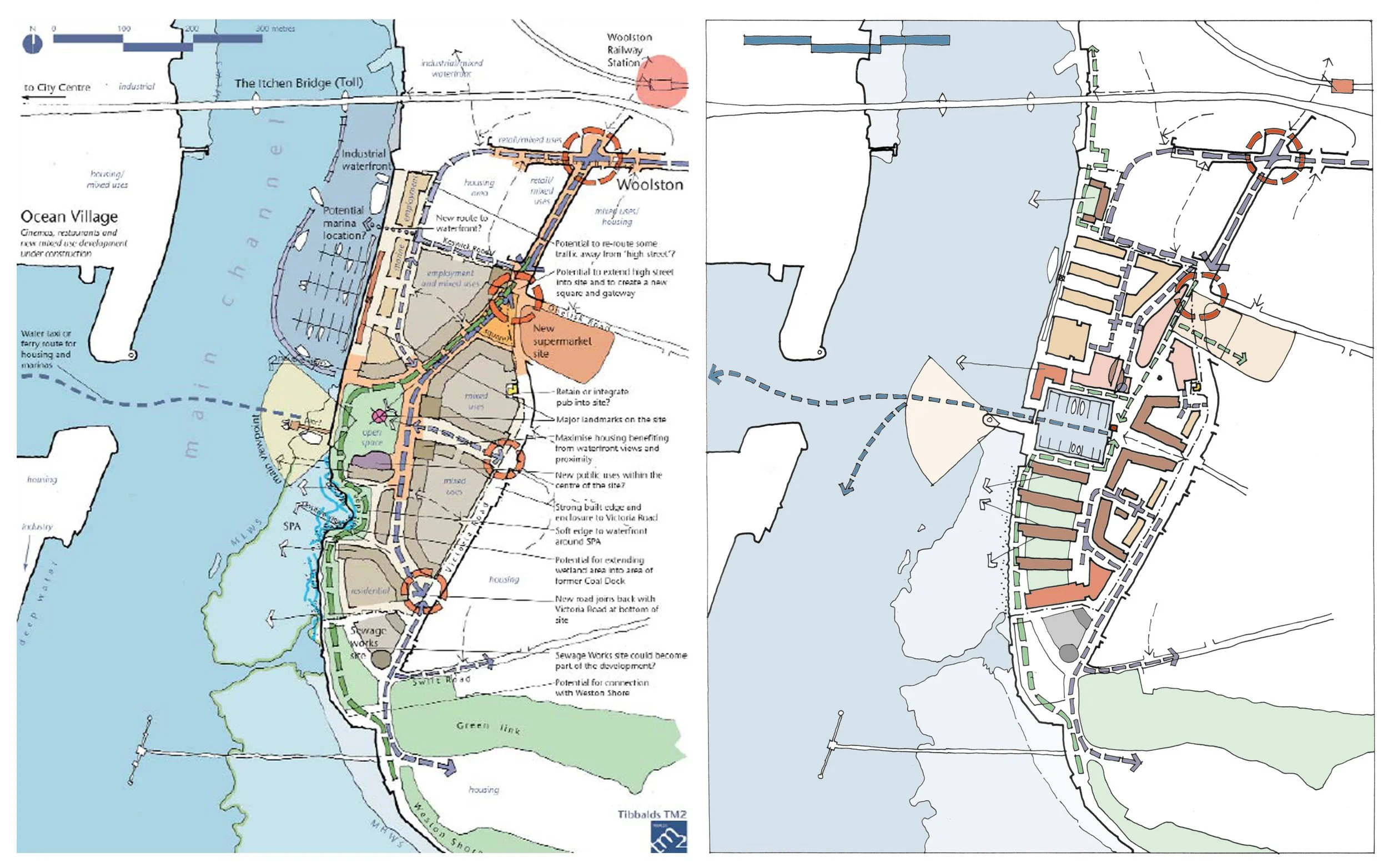 Following an expression of interest to an open competition organised by the South East England Development Agency (SEEDA), Stephenson Bell were shortlisted to create a design framework for development within a £150m regeneration project. The Vosper Thorneycroft shipyard at Woolston in Southampton was relocating to Portsmouth in early 2004. The mixture of cleared site and significant industrial structures created a significant opportunity for an exemplary mixed use development on the South Coast.